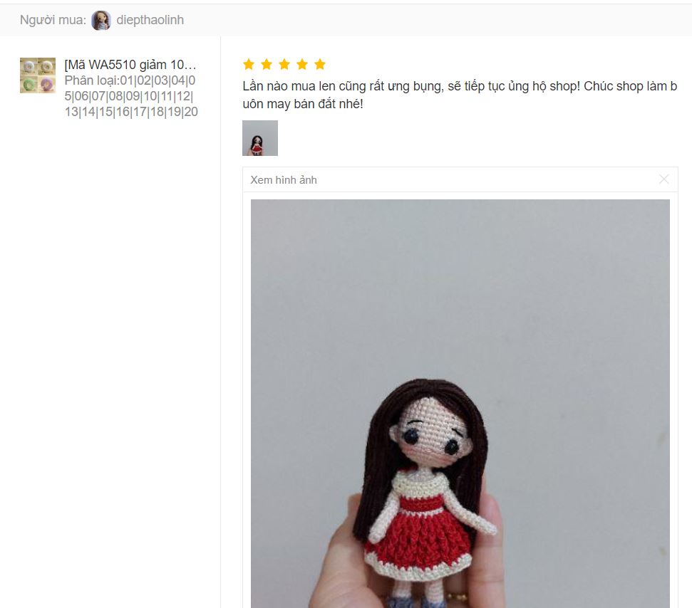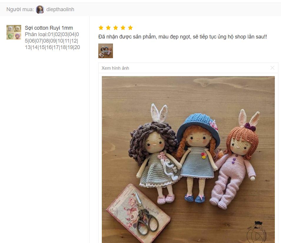 Trả lời: Sử dụng sợi cotton Ruyi 1.0mm chị em cần sử dụng kim đan có kích thước 2-3mm