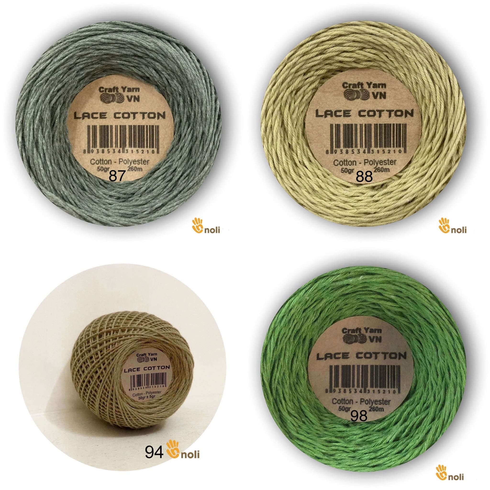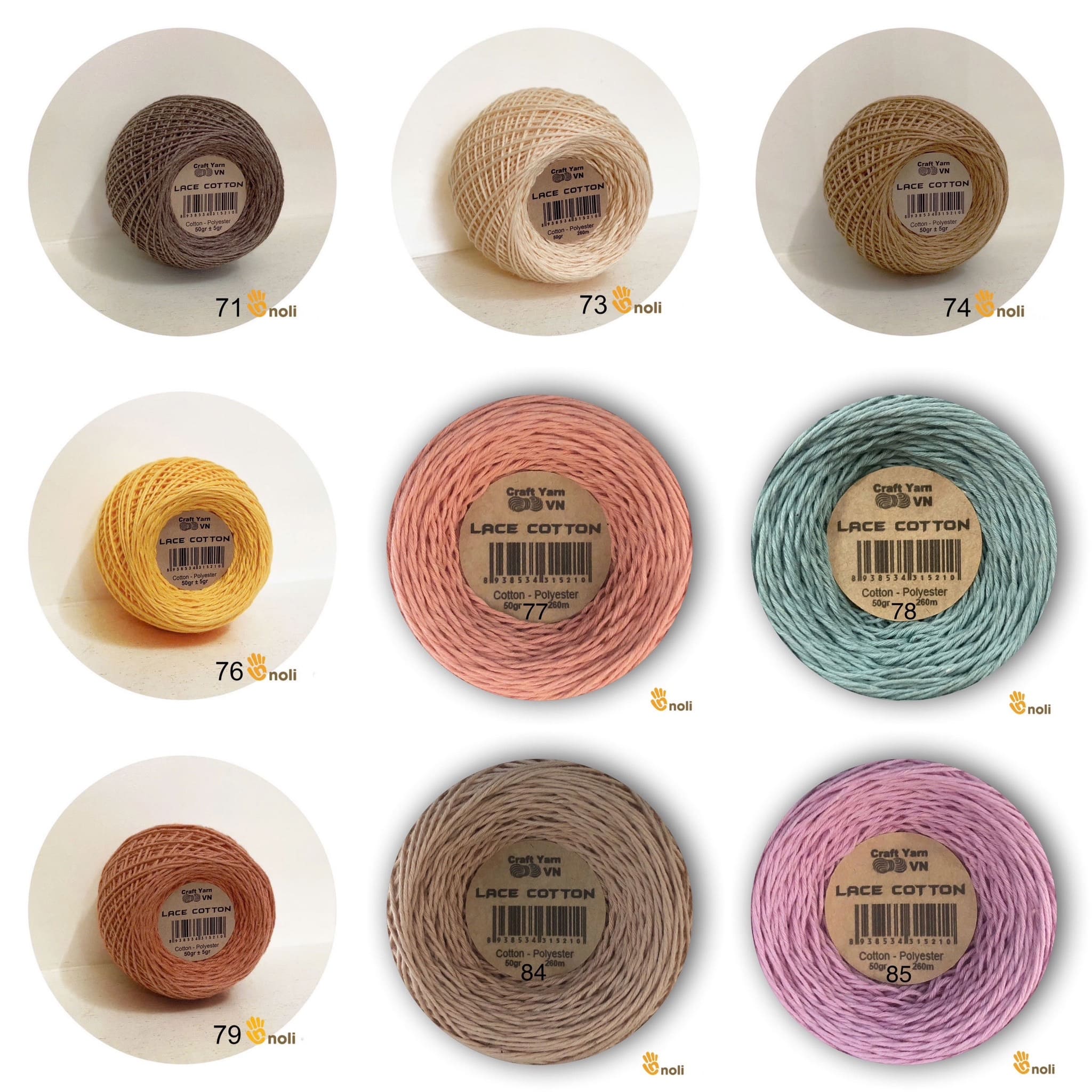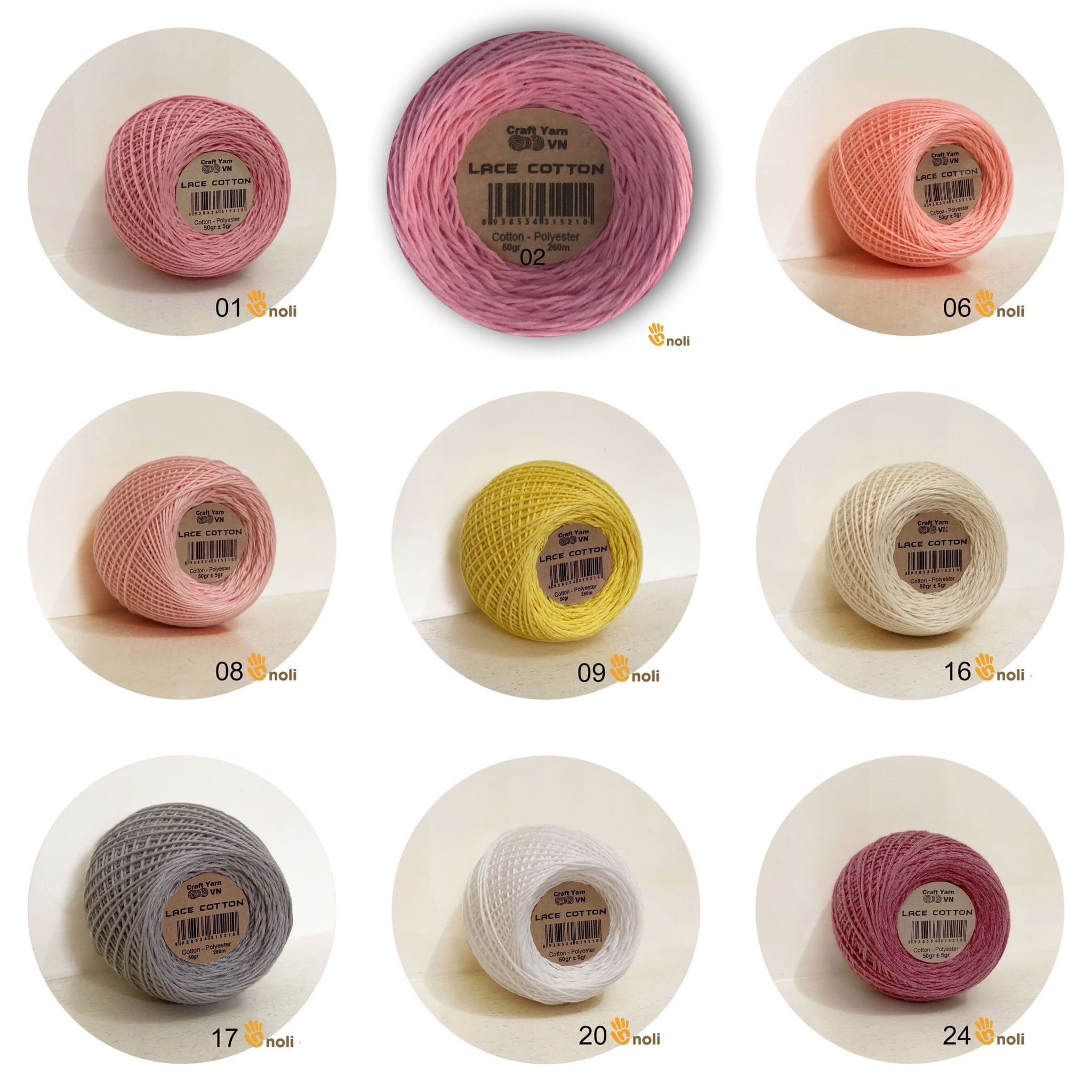 Sợi Lace Cotton - siêu phẩm mới ra lò được chị em handmade yêu thích. Sợi thích hợp để đan, móc váy đầm, áo kiểu, bikini, khăn trải bàn, doily, thú bông... Sợi se tròn nên rất dễ móc, không bị mắc sợi. Sợi có kích thước 0.8mm lên sản phẩm mềm và nhẹ
