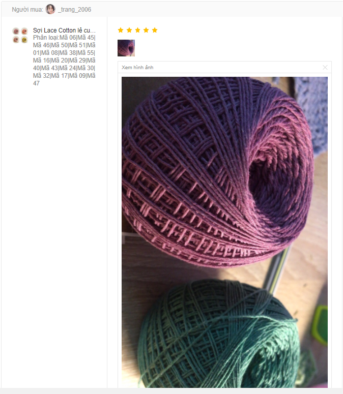 Trả lời: Sợi Lace có trọng lượng 50gr
