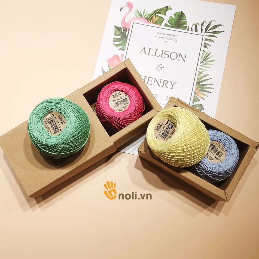 Đặc biệt, sợi Lace Cotton được đóng trong 1 hộp giấy chắc chắn, thiết kế tiện lợi để đựng được 6 cuộn. NoLi Handmade đảm bảo vận chuyển không hề bị méo hay hỏng hộp và chị em nhận được hàng chắc chắn sẽ cảm thấy ưng ý.