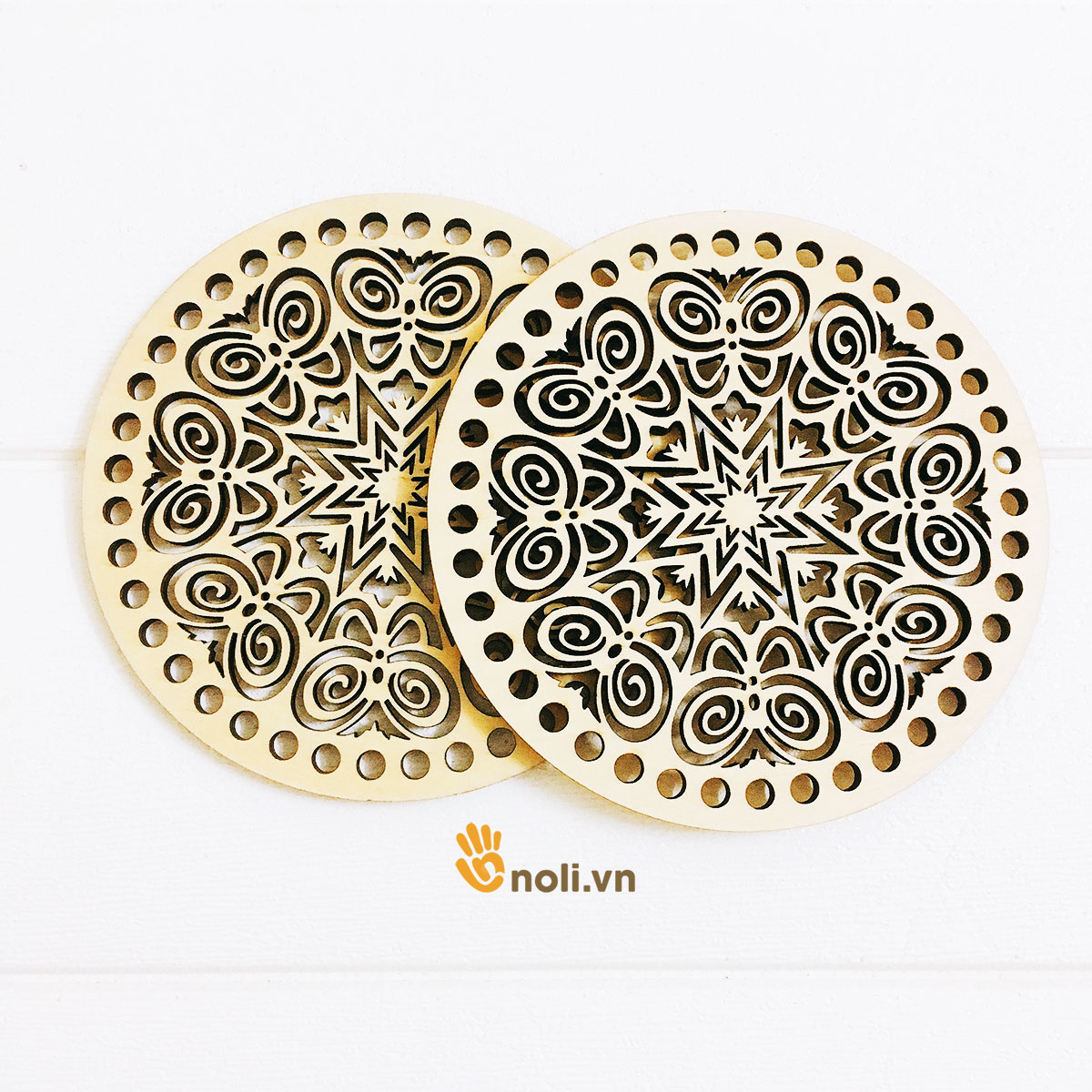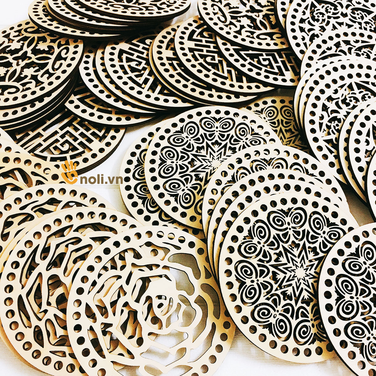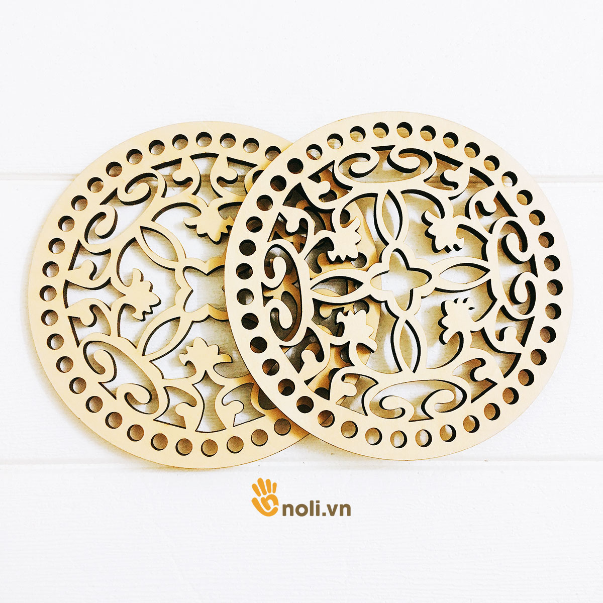 2 Tấm gỗ tròn khắc hoa văn làm túi Camaron có bề mặt nhẵn, làm từ gỗ thiên nhiên, thân thiện với môi trường, xung quanh là các lỗ tròn giúp chị em đan móc tiện lợi. Sản phẩm có thiết kế hoa văn cổ điển mang lại sự sang trọng, quý phái. Sản phẩm có rất nhiều họa tiết khác nhau, giúp cho chị em có những lựa chọn tốt.