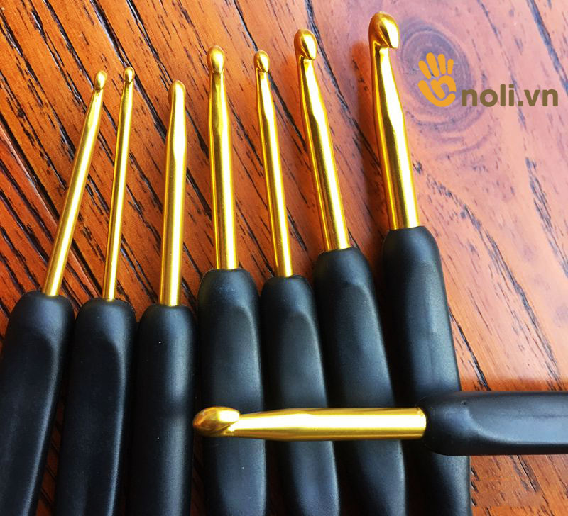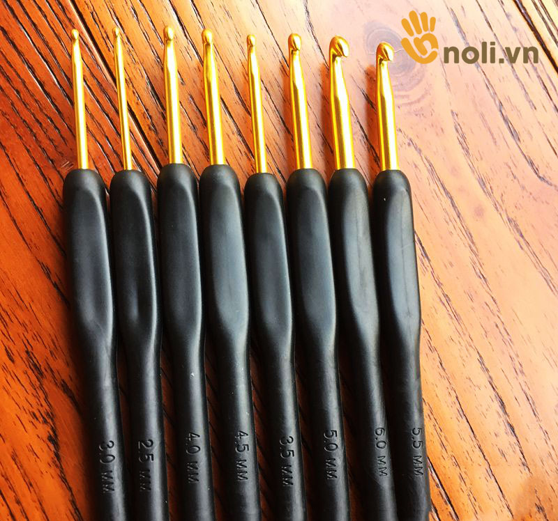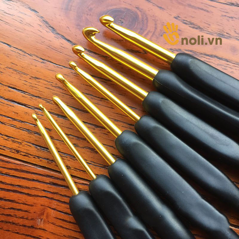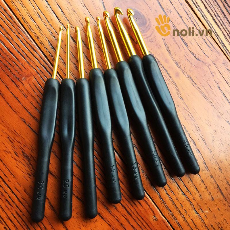 Bộ kim móc cán đen 8 cây được thiết kế với cán cầm nhựa tròn mềm, đầu móc nhôm nhẹ tênh. Không gây cảm giác mỏi tay khi móc. Đầu móc mượt mà, móc không hề bị dắt sợi. Với màu đen huyền bí thu hút, bộ kim được rất nhiều chị em yêu thích. Bộ kim móc chạy size từ 2.5mm đến 6.0mm, phù hợp với mọi loại len sợi.