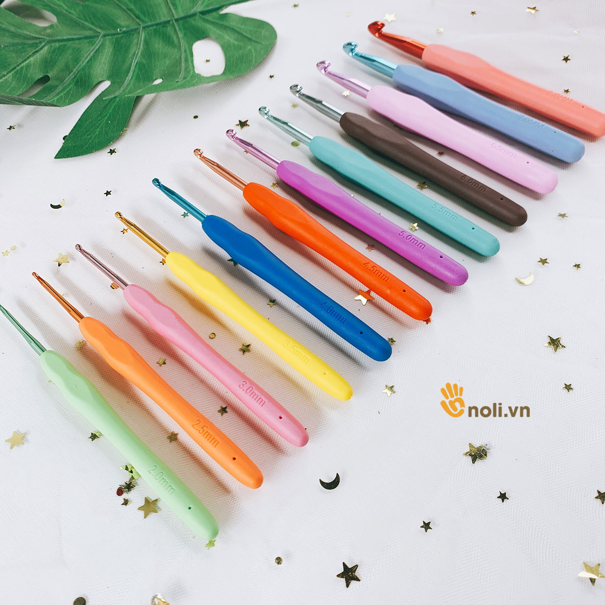 Kim móc cán dẻo cầu vồng là sự kết hợp màu sắc từ cán tới đầu kim móc. Chúng có tay cầm được thiết kế bằng cao su dẻo, nhẹ nhàng và mềm mại, giảm đau tay và mỏi tay tối đa khi móc. Màu sắc bắt mắt phong phú và đa dạng là đặc điểm nổi bật của sản phẩm. Bộ kim cản dẻo cầu vồng 12 cây có đủ các size phù hợp với mọi loại len sợi.