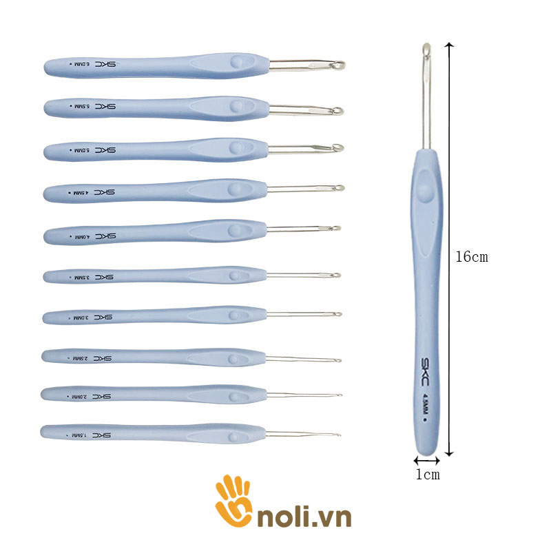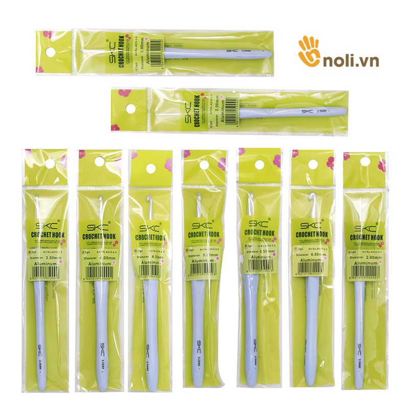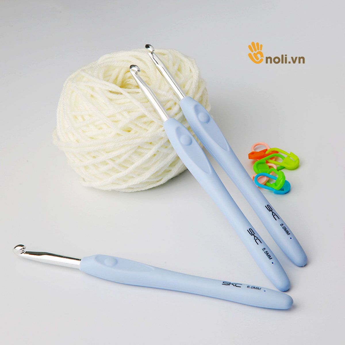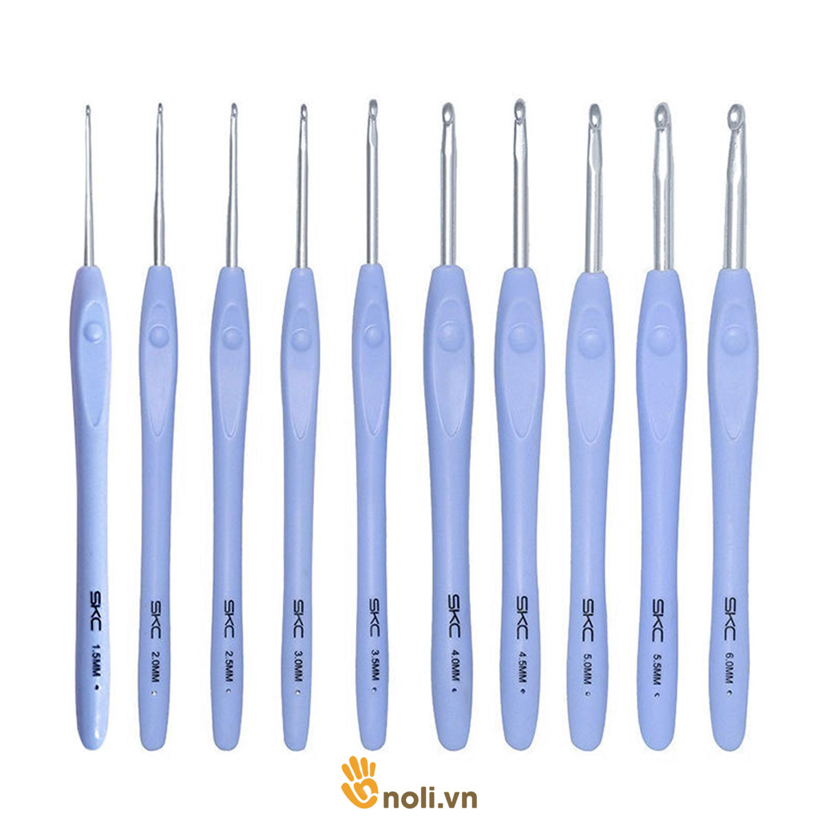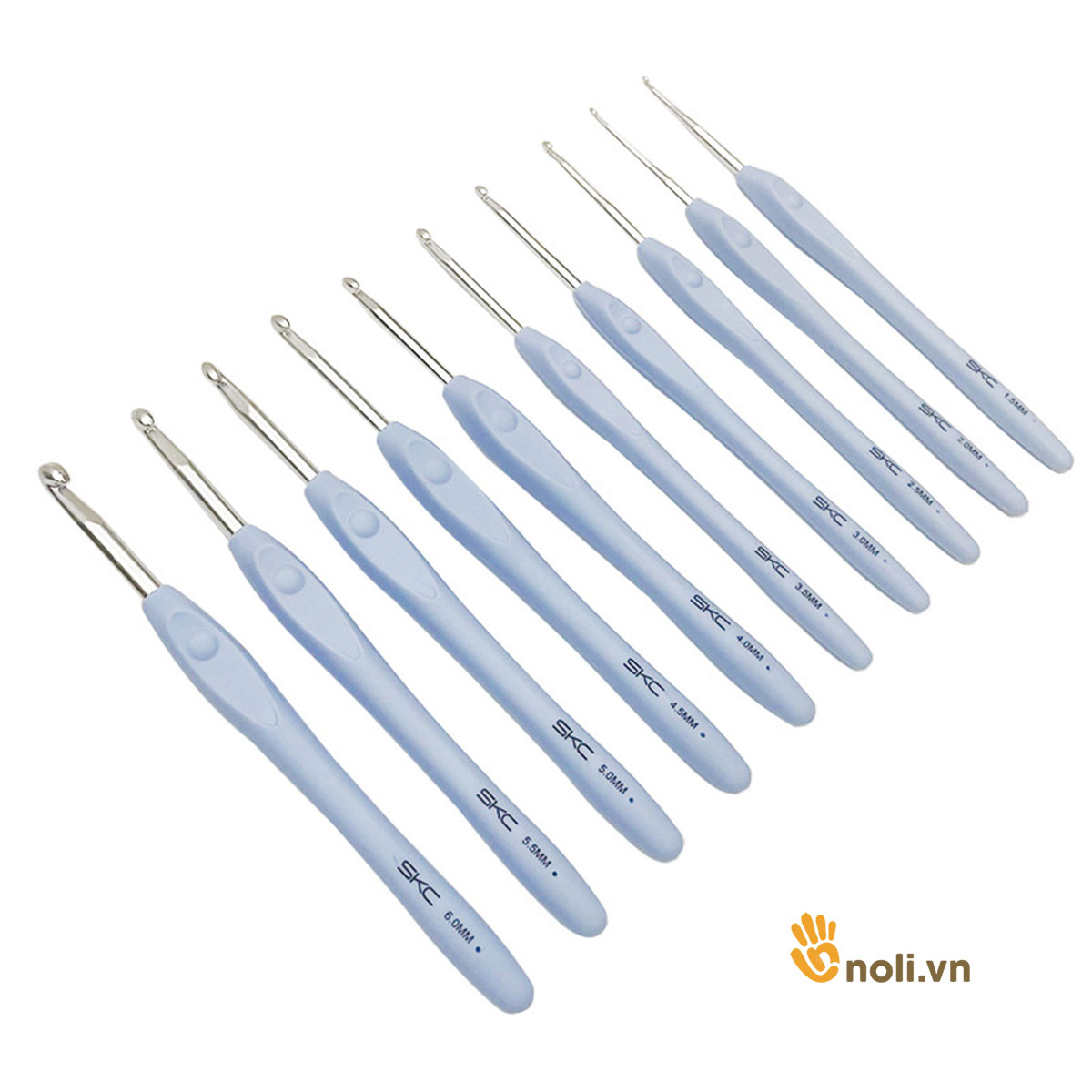 Kích thước kim móc cán dẻo SKC: 1.5mm, 2.0mm, 2.5mm, 3.0mm, 3.5mm, 4.0mm, 4.5mm, 5.0mm, 5.5mm, 6.0mm
