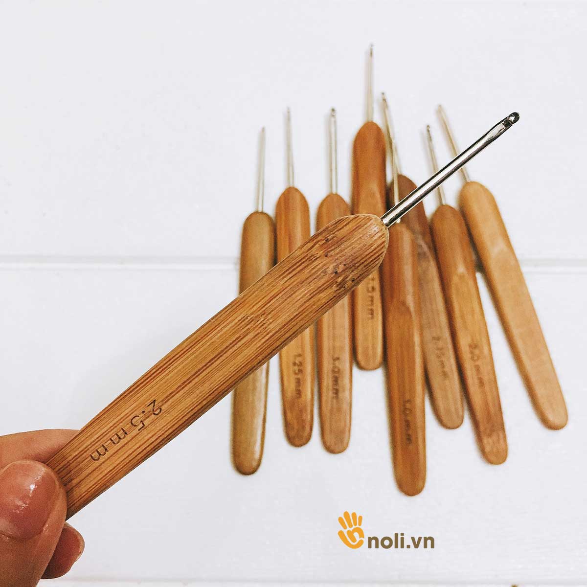 Bộ kim móc cán gỗ có 10 cây chạy size từ: 0.5mm - 0.75mm - 1.0mm - 1.25mm - 1.5mm - 1.75mm - 2.0mm - 2.25mm - 2.5mm - 2.75mm