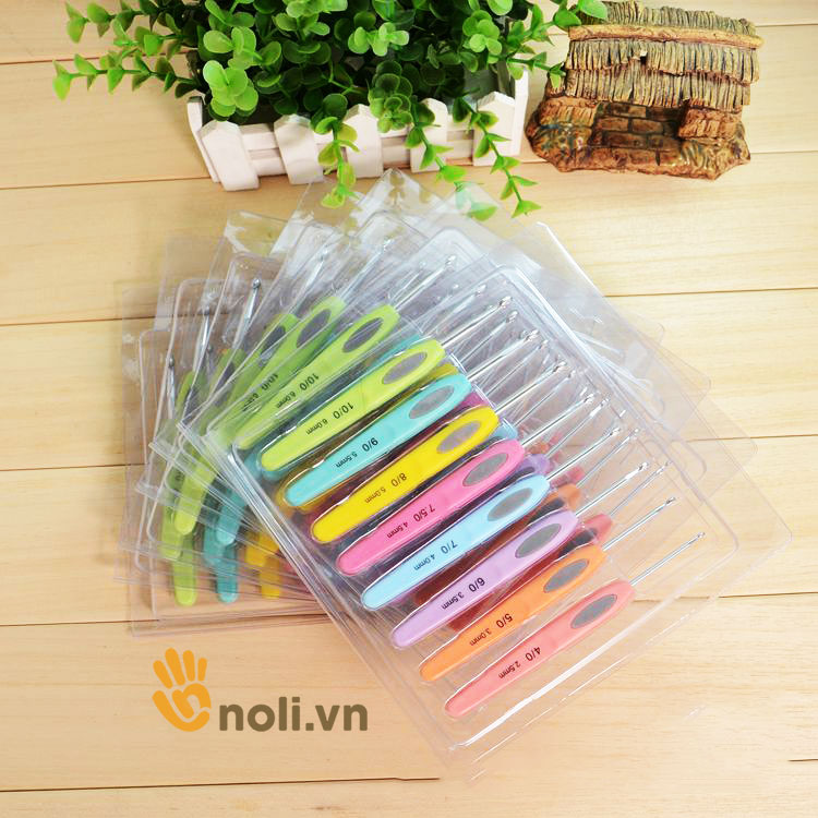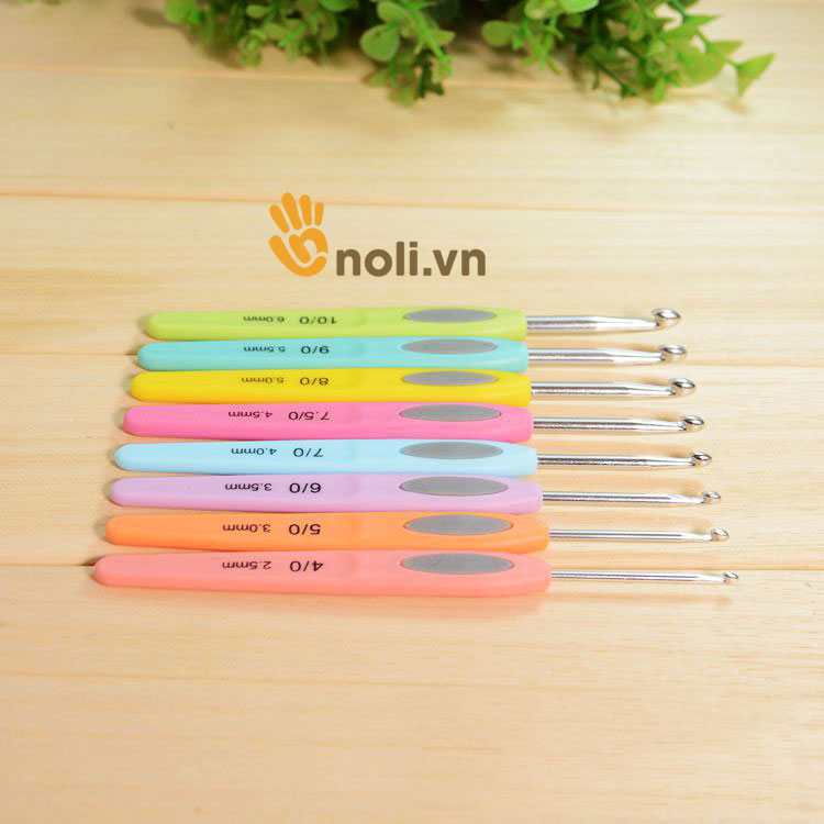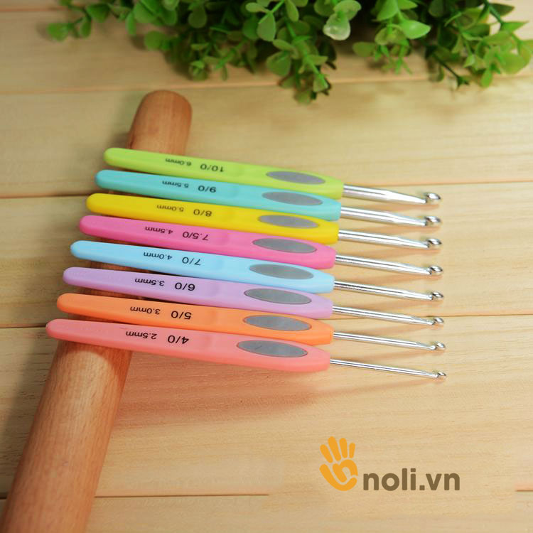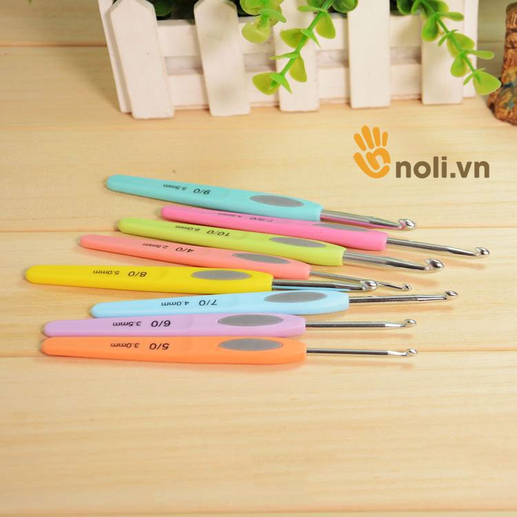 Bộ kim móc sắc màu 8 cây được lấy cảm hứng theo bộ kim móc Clover Nhật nhưng được biến thể sặc sỡ hơn. Chúng có cán cầm dẹt. Đầu móc bằng nhôm nhẹ tênh, giúp các bạn cầm kim không mỏi tay. Với 8 màu sắc rất dễ thương, nữ tính bộ kim được rất nhiều chị em yêu thích bởi giá thành phải chăng, hợp túi tiền. Bộ kim móc chạy size từ 2.5mm đến 6.0mm, phù hợp với mọi loại len sợi.