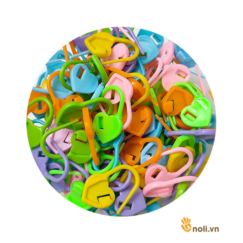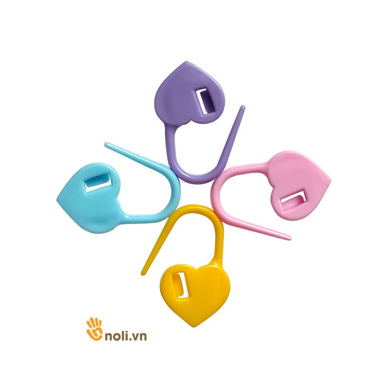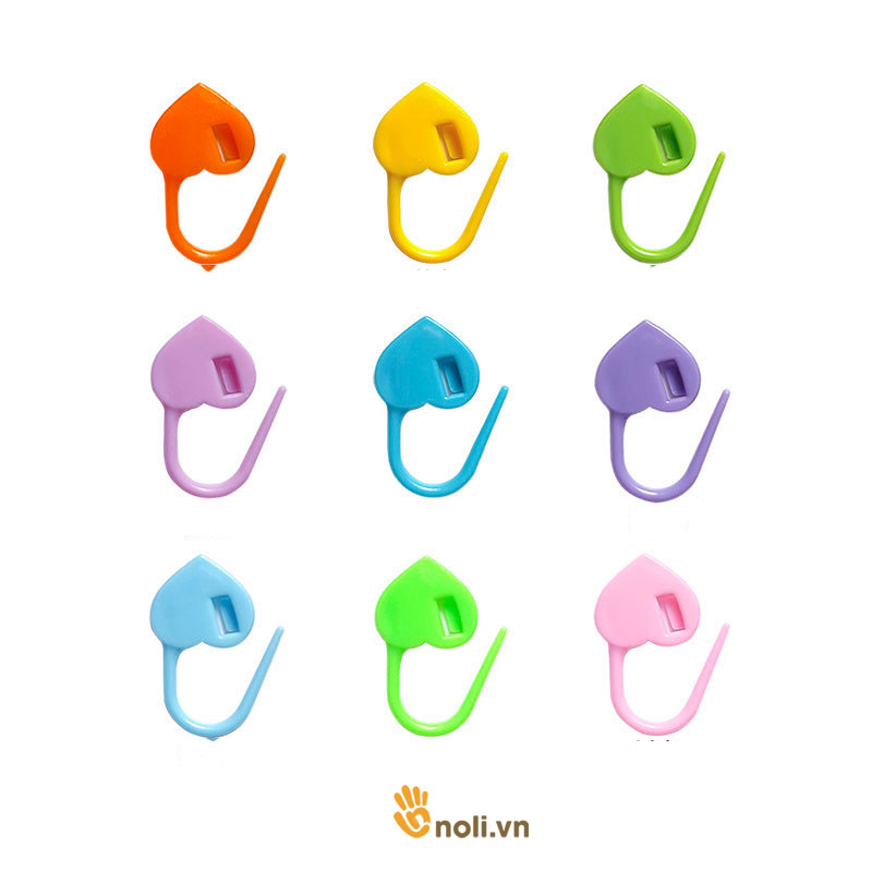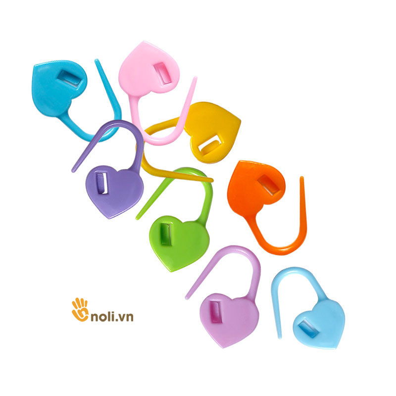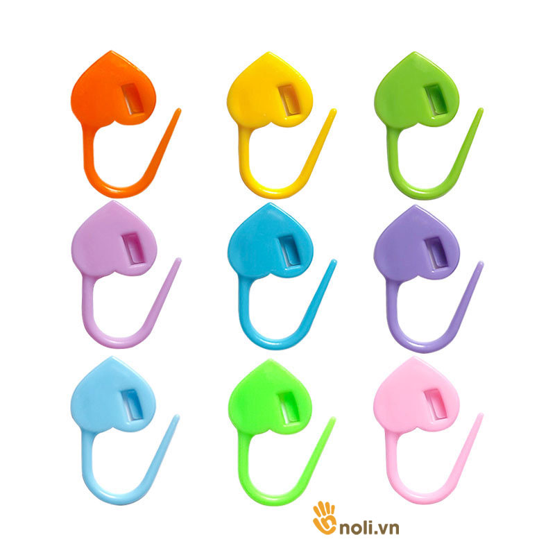 Đánh dầu len hình trái tim có chất liệu bằng nhựa, màu sắc sặc sỡ bắt mắt. Dùng để đánh dấu mũi, hàng khi móc. Sản phẩm không thể thiếu đối với các bạn mới học móc len.