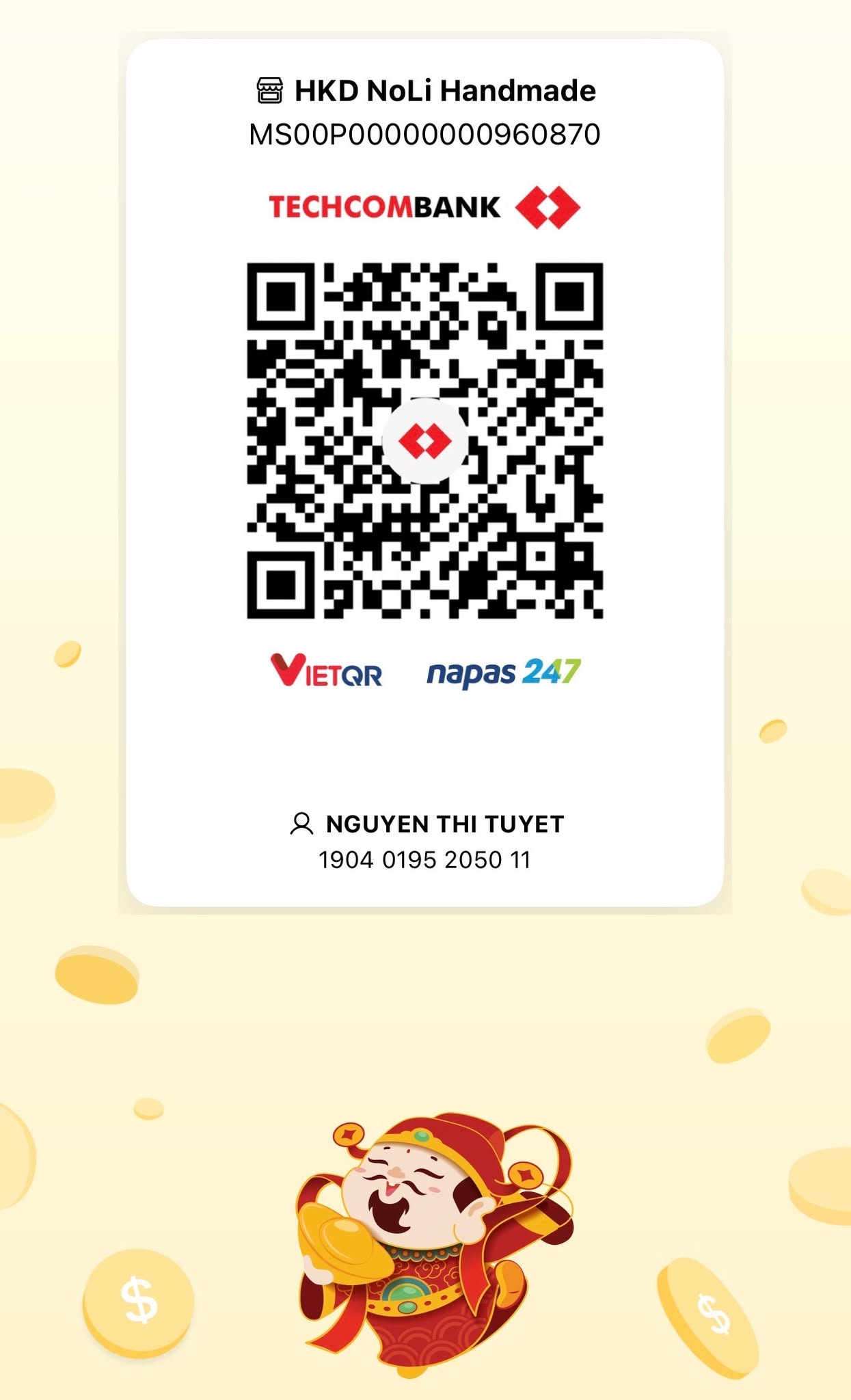 Chào mừng Quý khách đến với NoLi Handmade, Xin chân thành cảm ơn Quý khách đã ủng hộ NoLi Handmade. Để thanh toán, xin Quý khách lựa chọn một trong các hình thức sau đây: