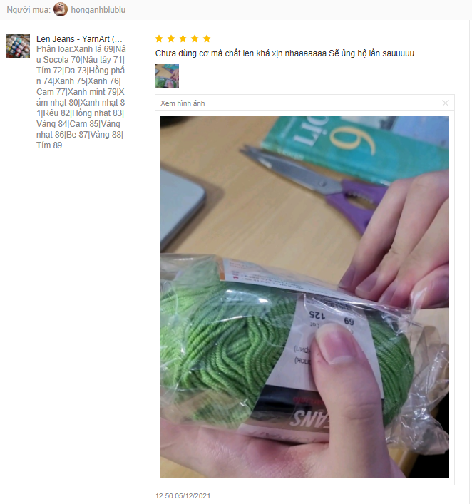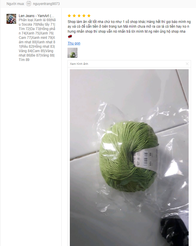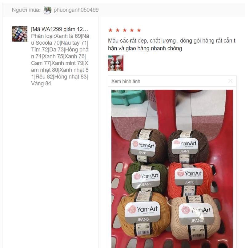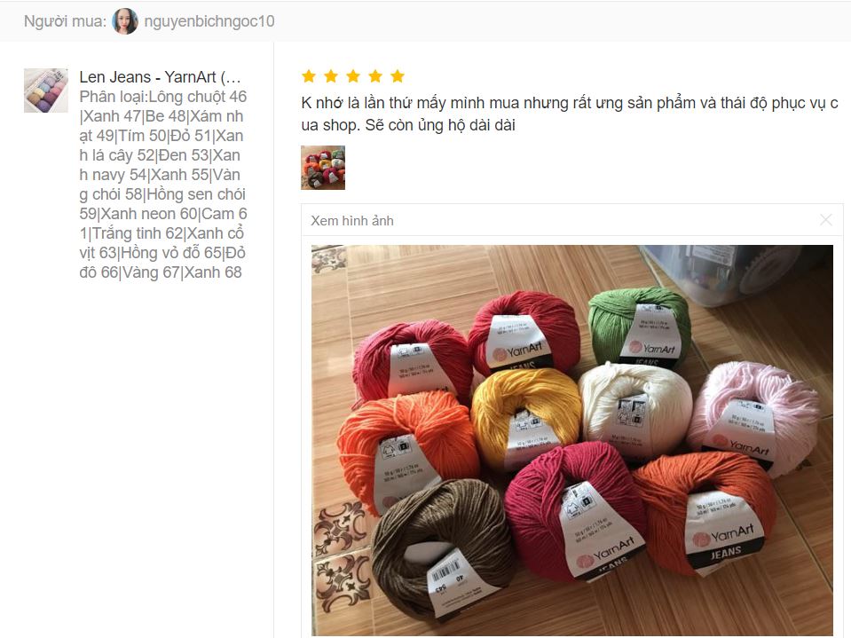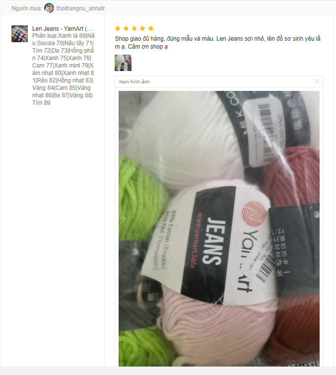 Trả lời: Đây là dòng len khá bền màu, không bị phai. Chị em có thể yên tâm sử dụng