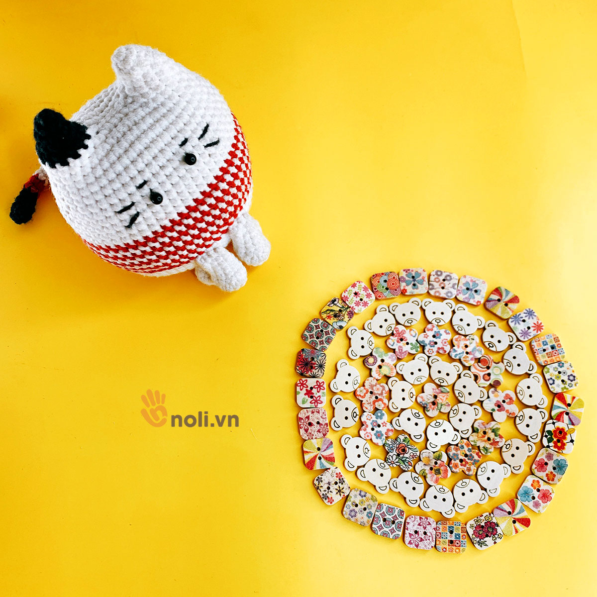 Cúc gỗ trang trí 15mm là sản phẩm siêu siêu hot mà NoLi muốn giới thiệu ngay đến cho các chị em handmade. Với cúc gỗ trang trí 15mm là kích thước trung bình hay sử dụng, chị em có thể làm vật dụng trang trí quần áo, túi, búp bê, thú bông, túi xách, thiệp ...