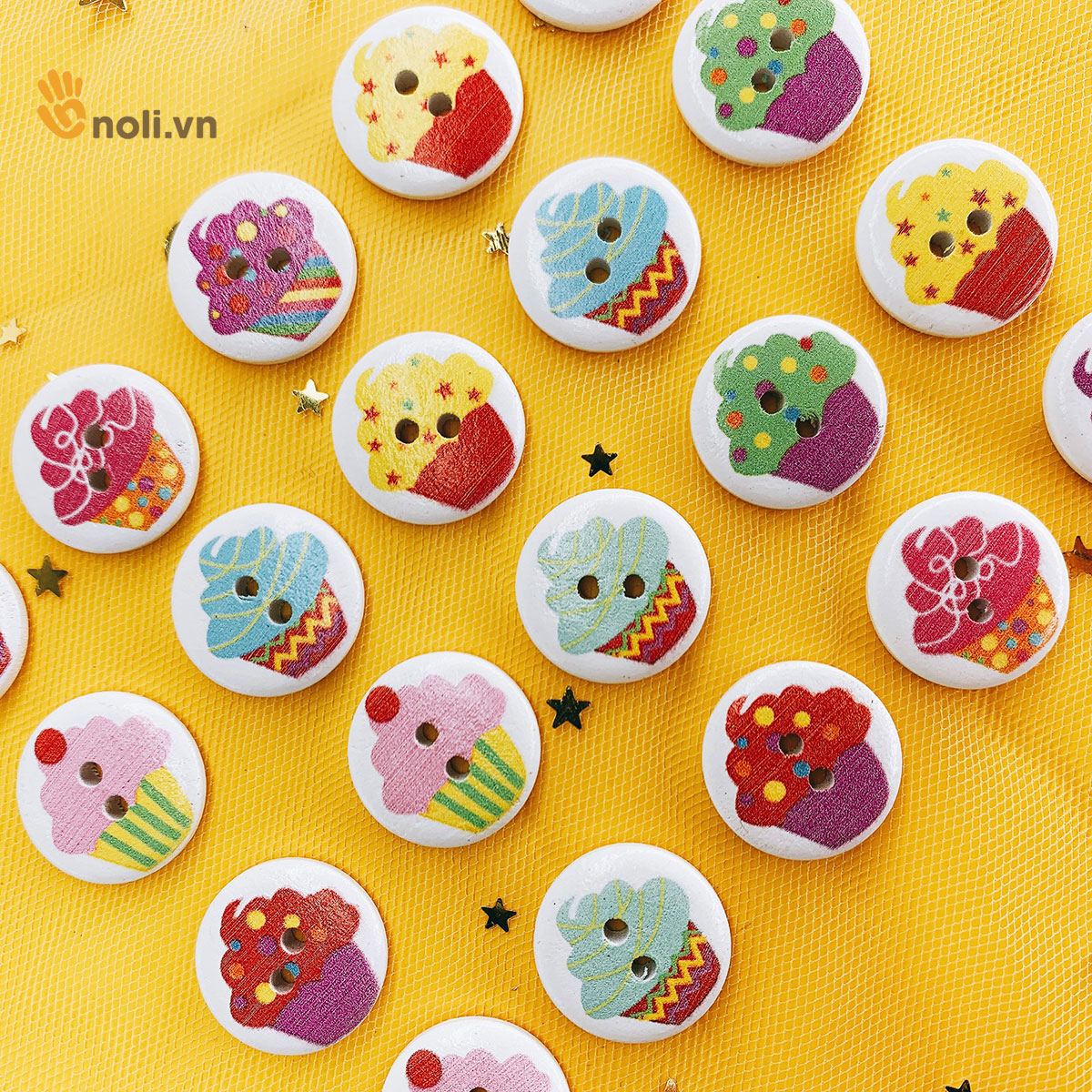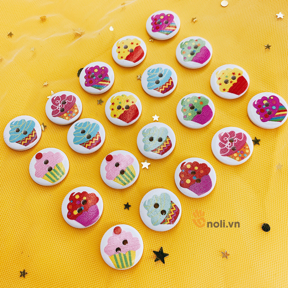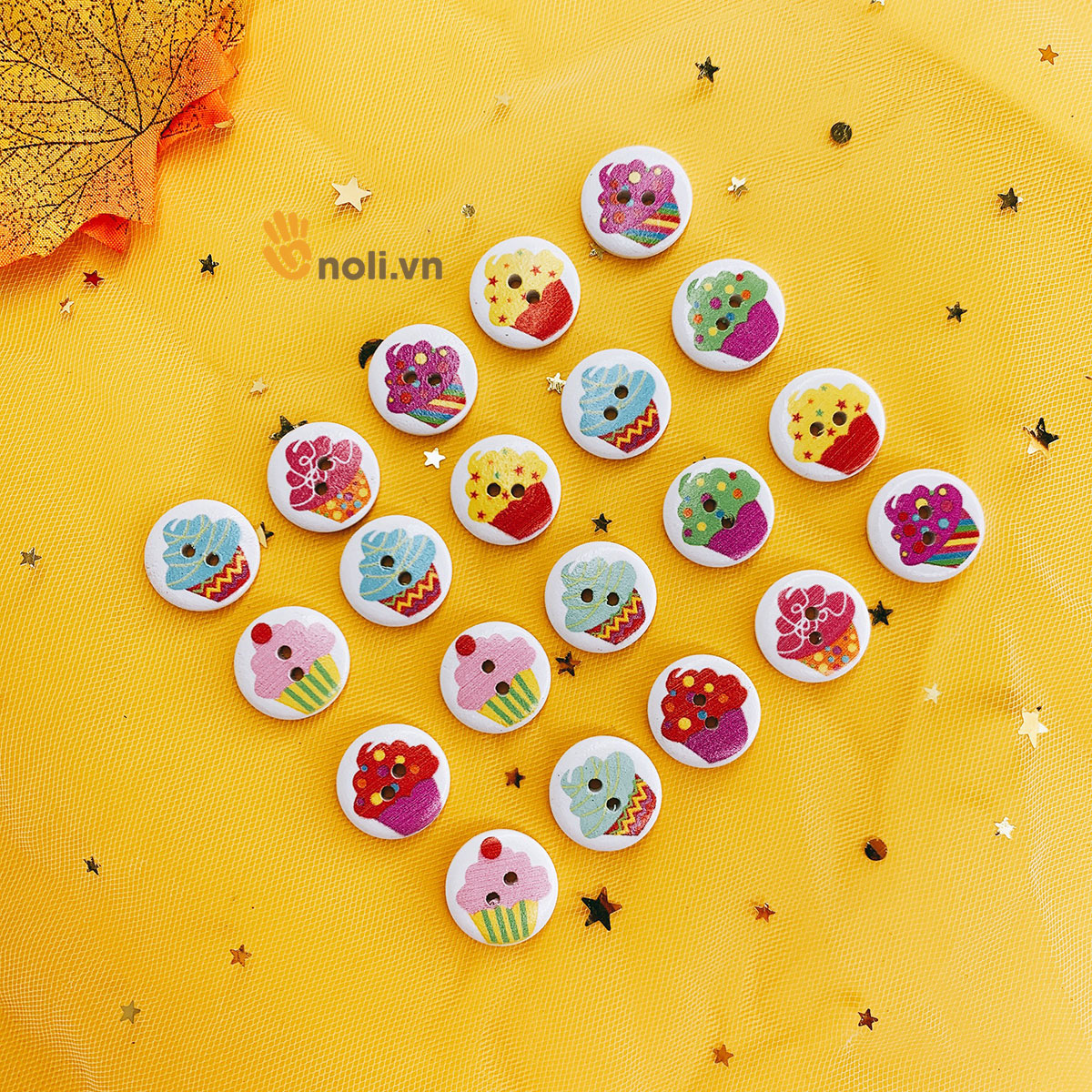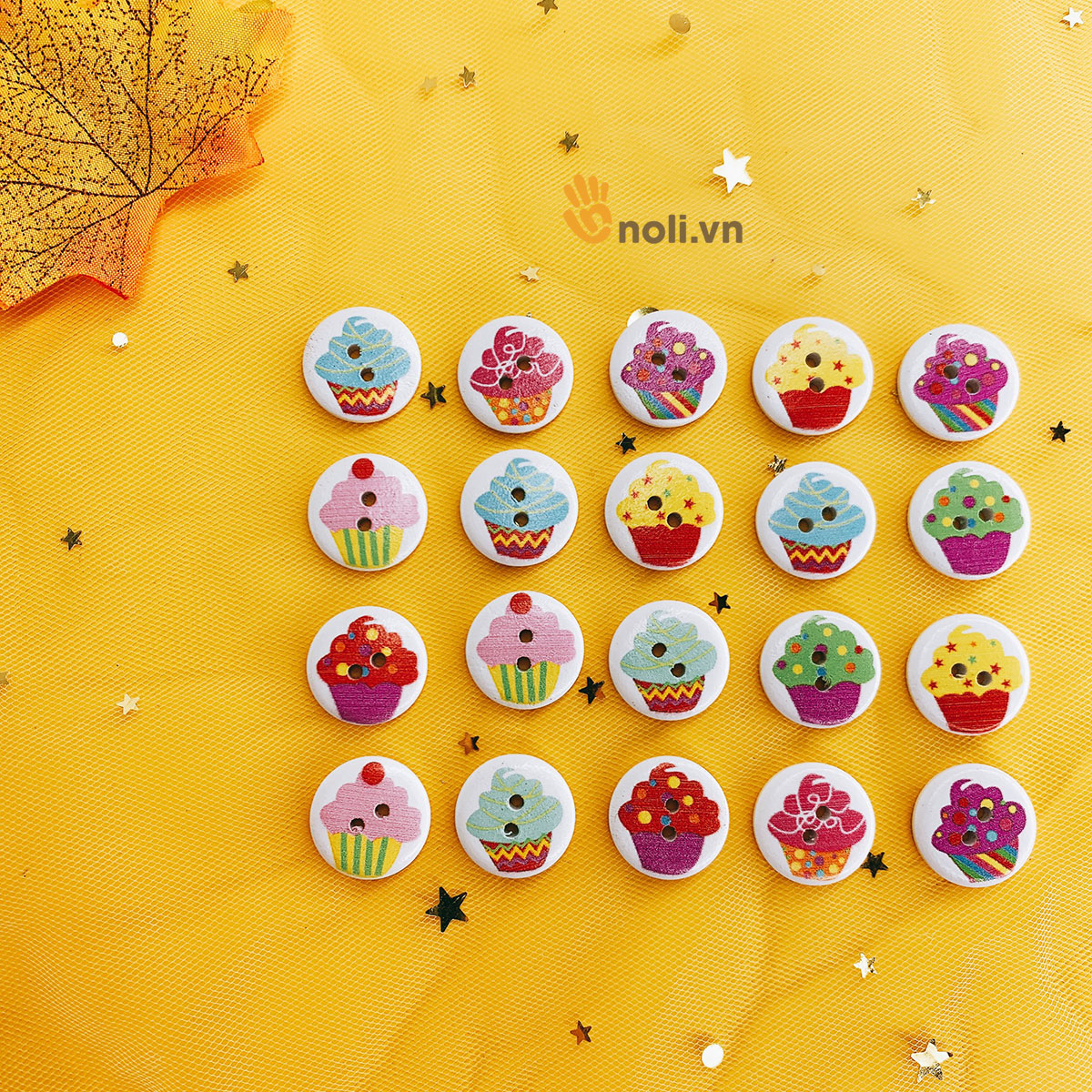 Cúc gỗ trang trí họa tiết bánh kem 20mm là phụ kiện không thể thiếu đối với chị em là tín đồ của handmade. Cúc gỗ trang trí họa tiết bánh kem thường được dùng để trang trí áo, mũ, thú bông, gối, thiệp và các vật dụng trong gia đình... Chị em hãy nhanh tay bổ sung vào bộ sưu tập cúc trang trí của mình nào.