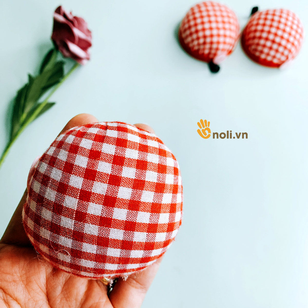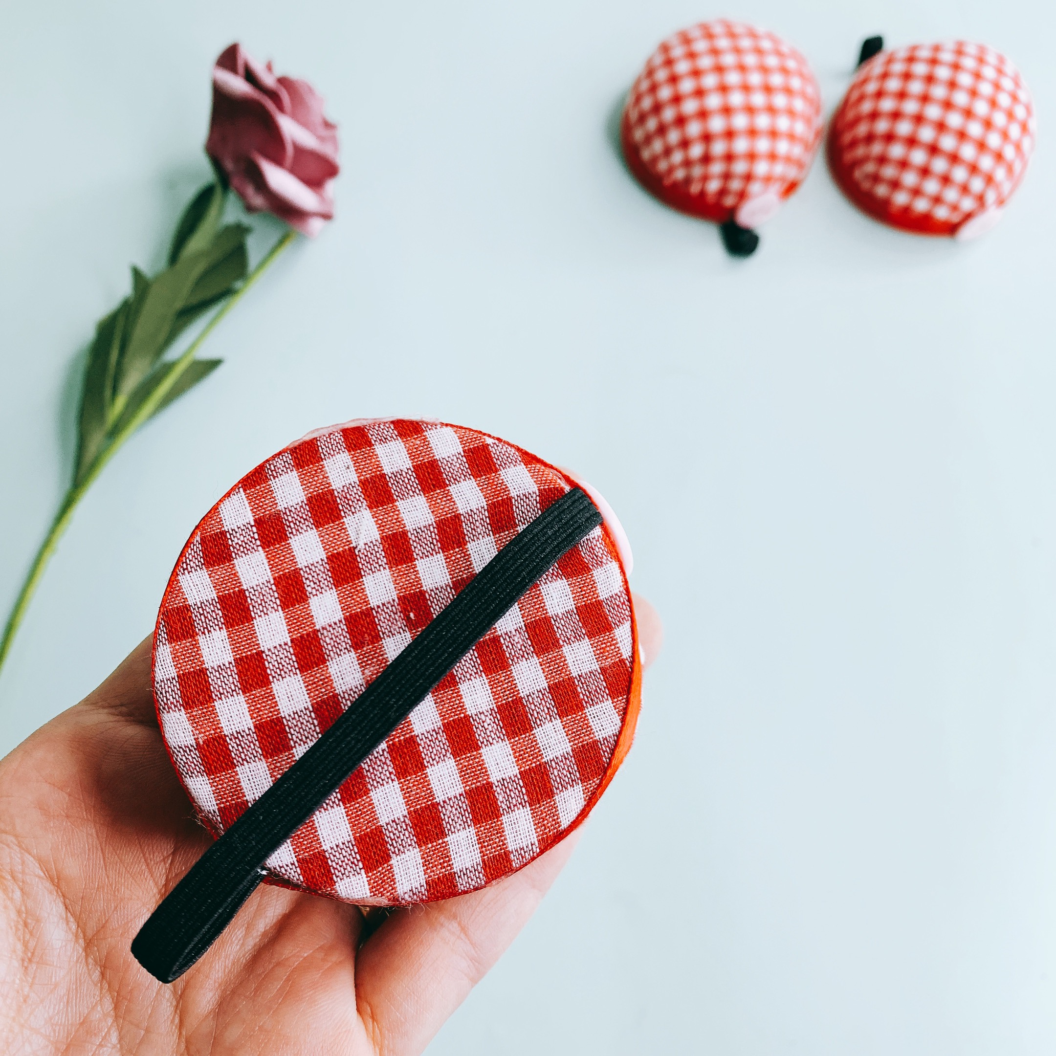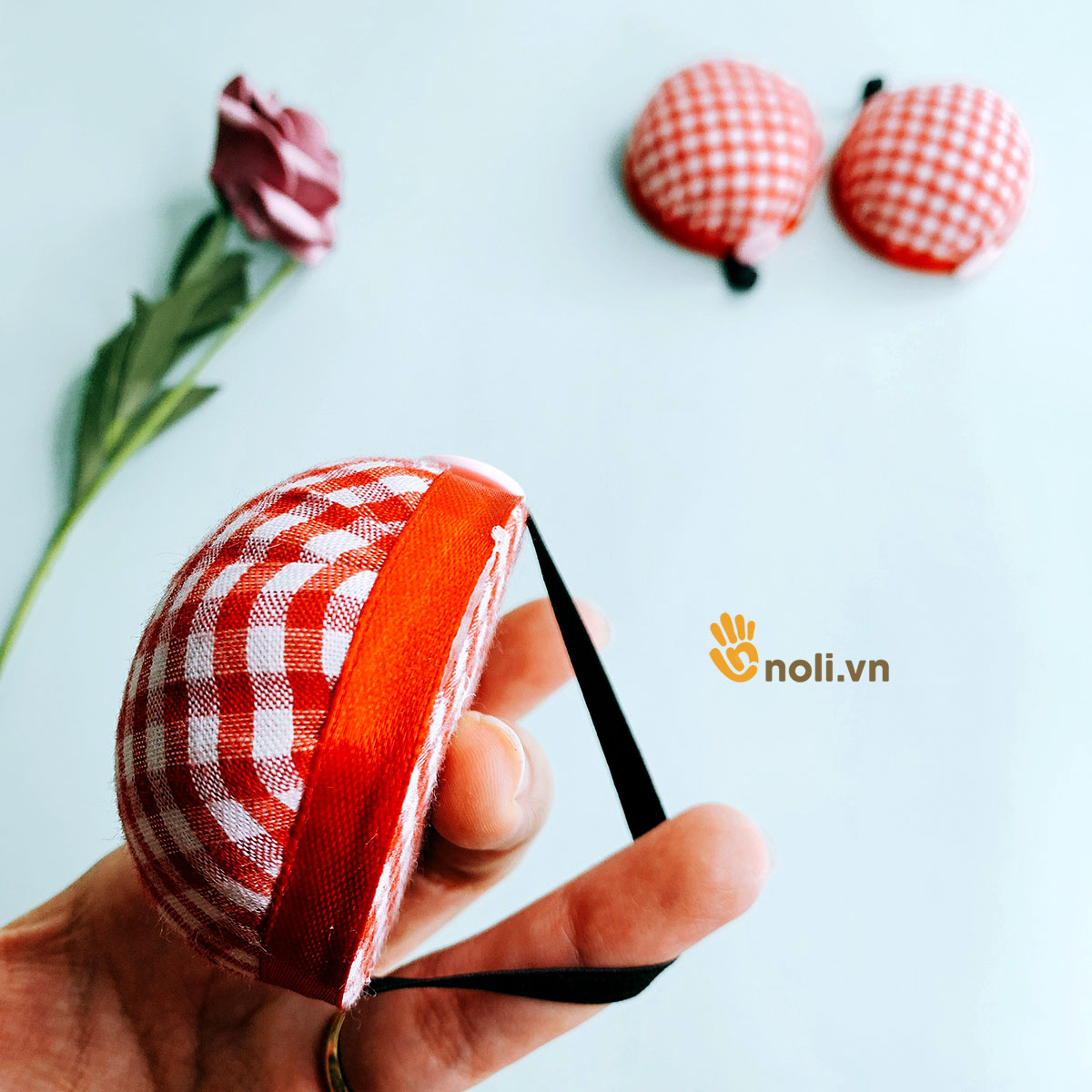Đế cắm kim khâu, ghim định vị có vỏ ngoài là lớp vải caro. Bên trong là xốp giúp cắm kim khâu lên. Mặt dưới có chun co giãn. Có thể cho vào cổ tay rất tiện lợi.Sản phẩm có đường kính khoảng 6cm, chiều cao 3.5cm, dây đeo cổ tay 0.5cm.