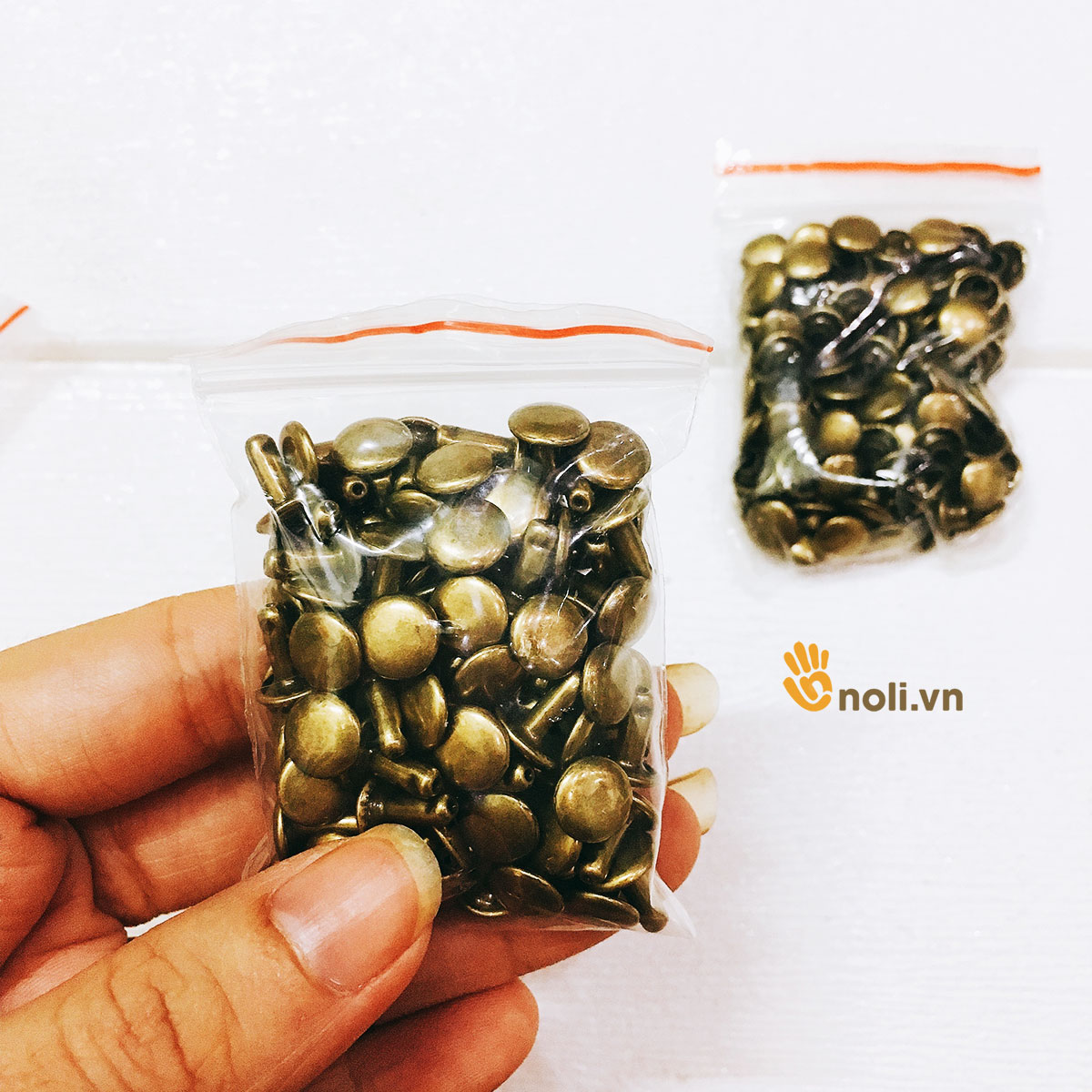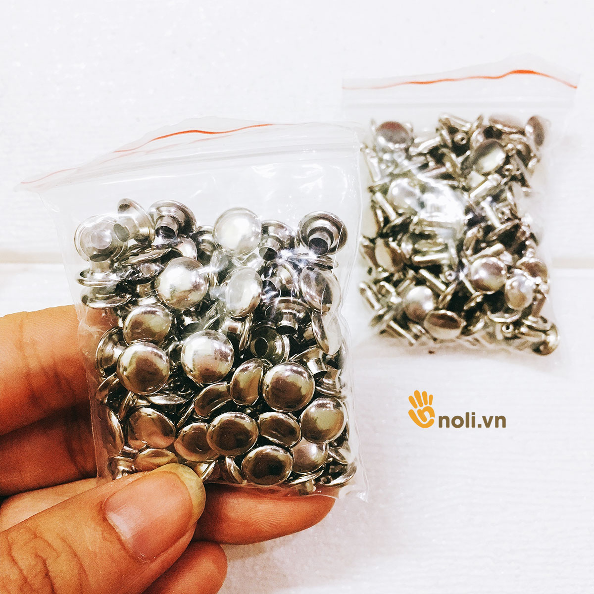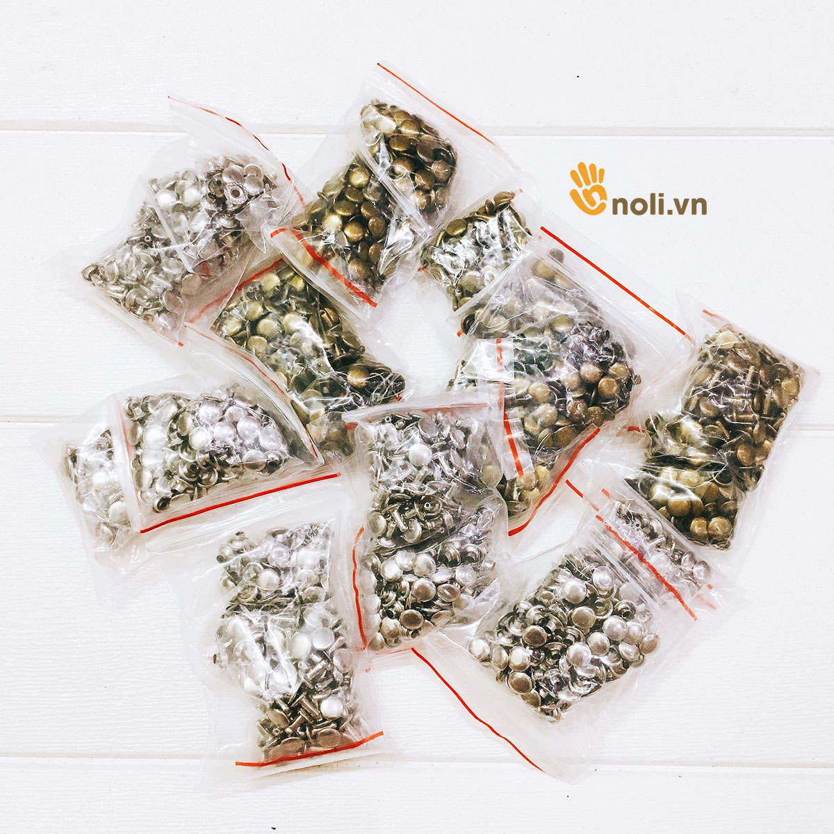 Đinh tán là phụ kiện không thể thiếu trong các túi xách, bộ quần áo, đồ da, hành lý, mũ nón. Nó giúp các chị em thể hiện phong cách của riêng mình và trang trí sản phẩm cho đẹp mắt. Mặt đinh tán có kích thước 8x8 mm - là kích thước thông dụng hay được dùng trong handmade.