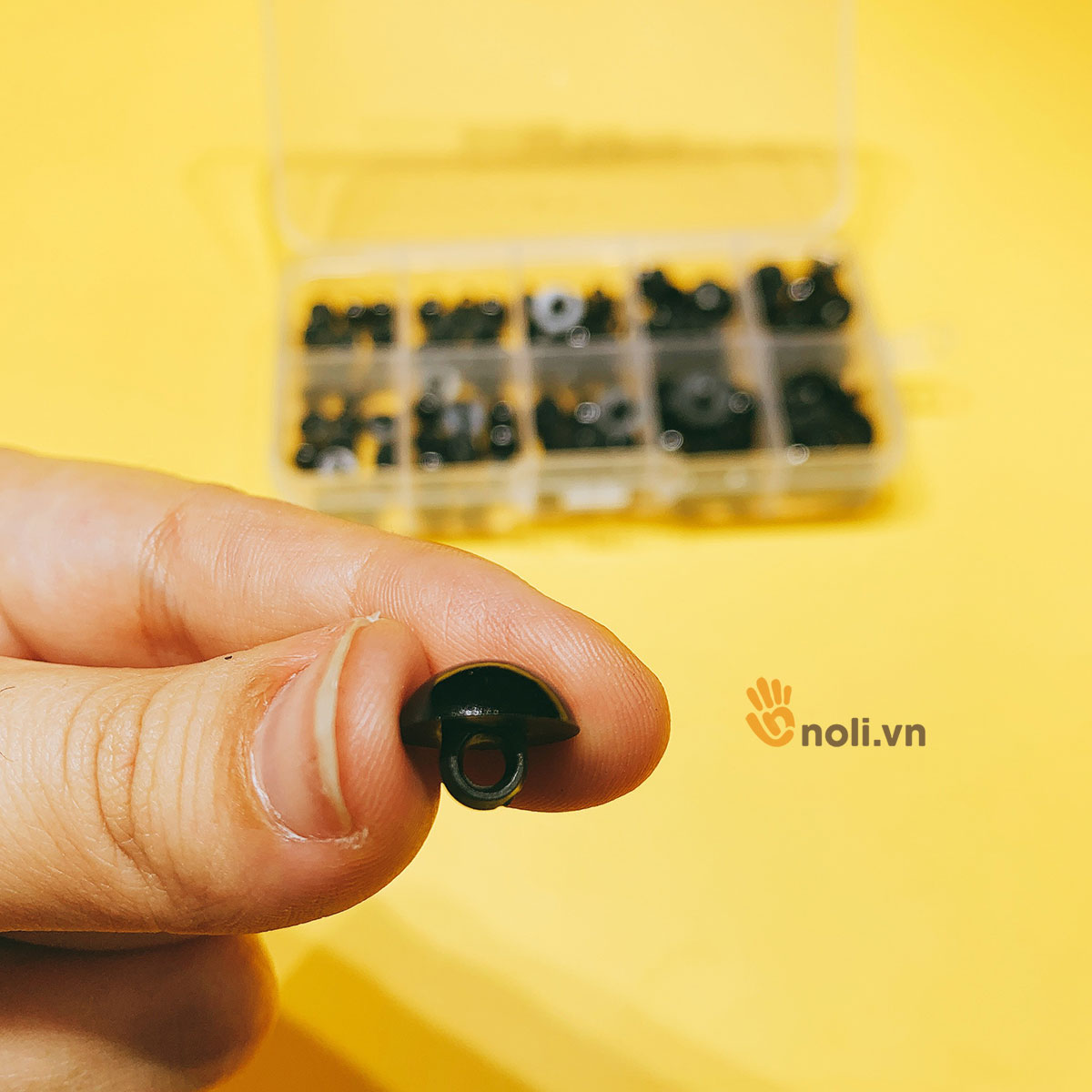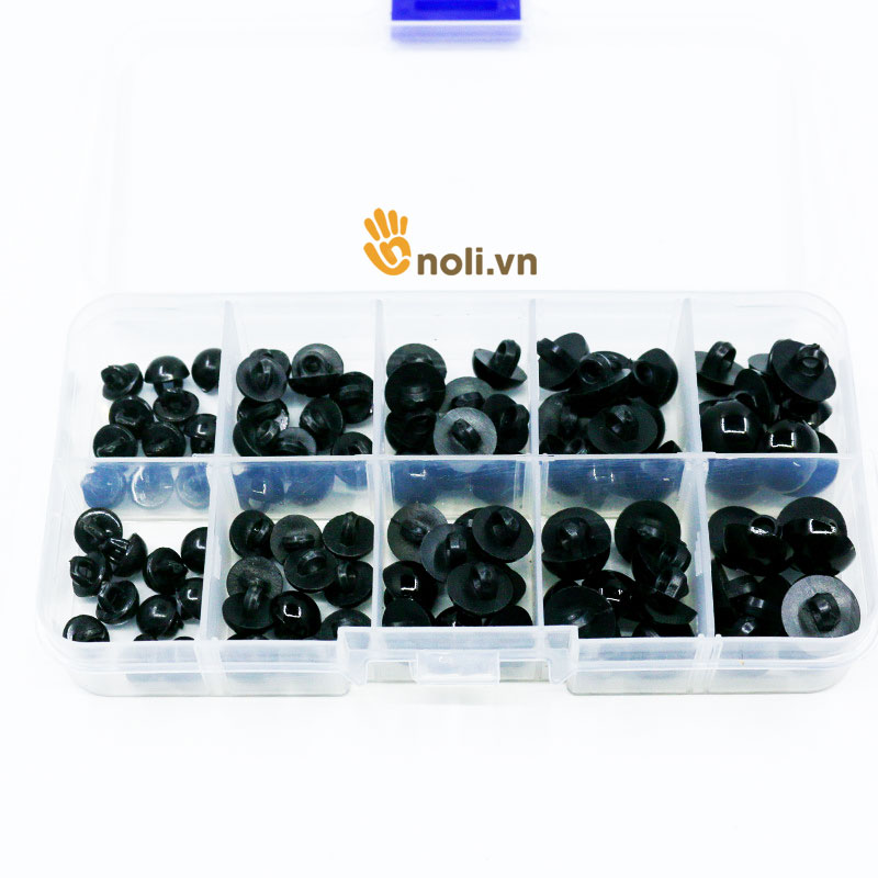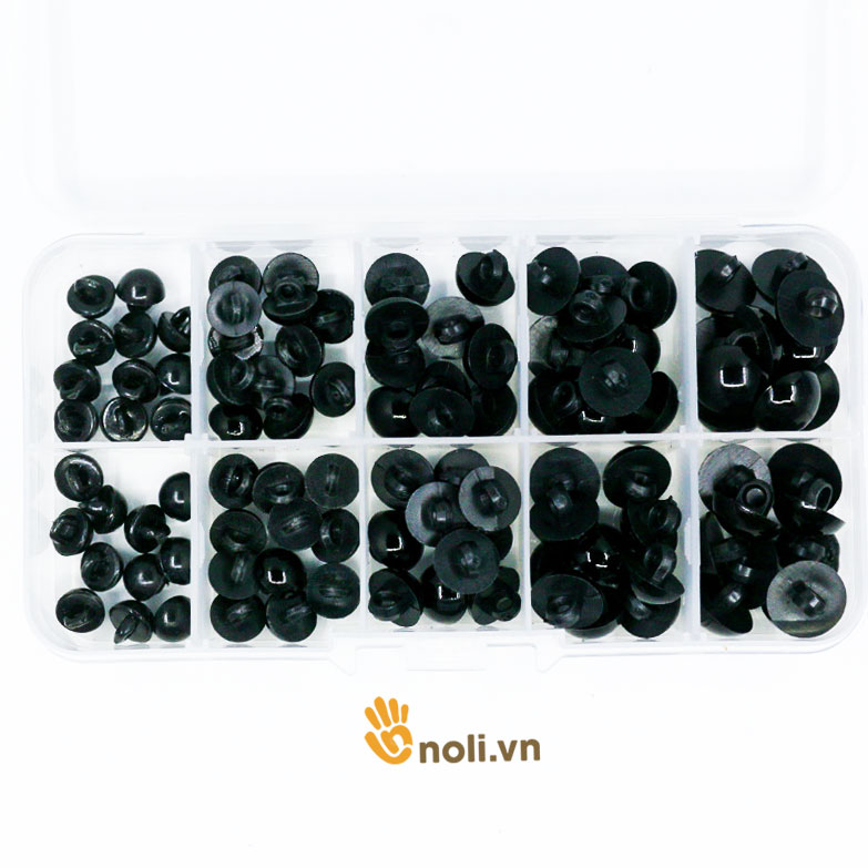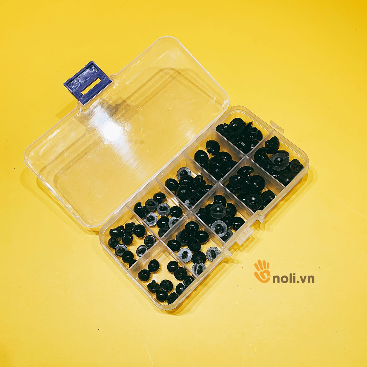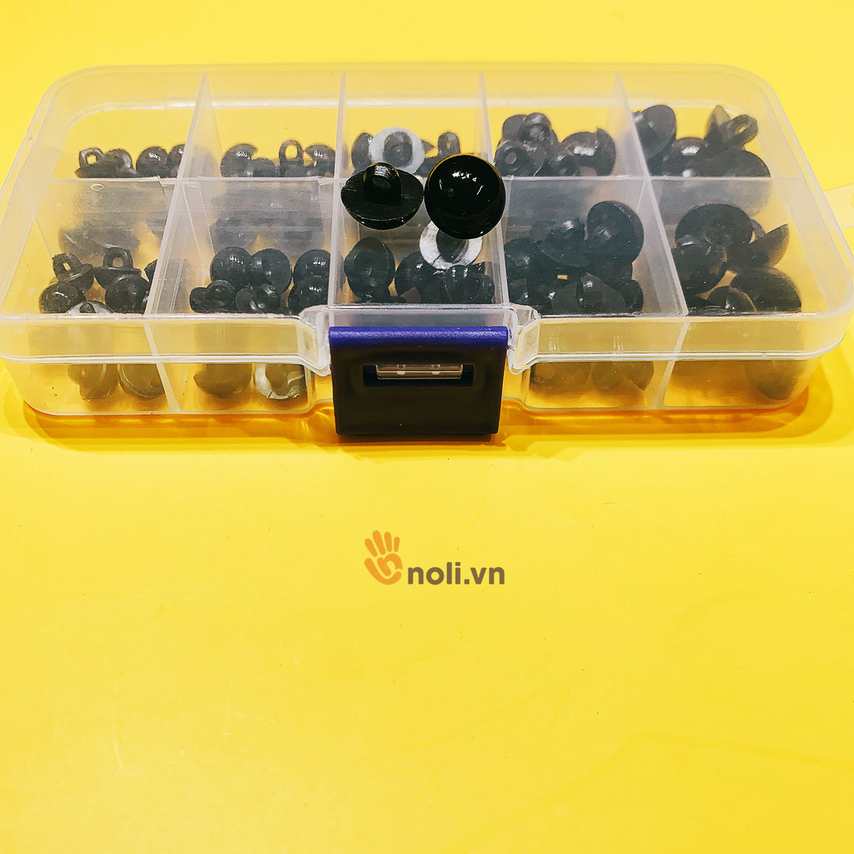 Hộp mắt thú khâu được chia 10 ngăn gọn gàng. Mỗi ngăn là các size mắt khác nhau từ lớn đến nhỏ, phù hợp với mọi loại thú amigurumi. Hộp chứa các size mắt phổ thông, hay được sử dụng. Mắt bóng, sáng, đẹp. Các bạn có thể dùng chỉ khâu hoặc len để khâu vào bề mặt thú bông. Với giá thành siêu hợp lý, số lượng mắt thú siêu nhiều, bạn sẽ sở hữu 1 hộp mắt thú khâu 100 cái vừa tiện lợi vừa hợp túi tiền.