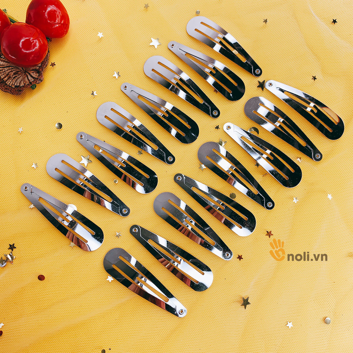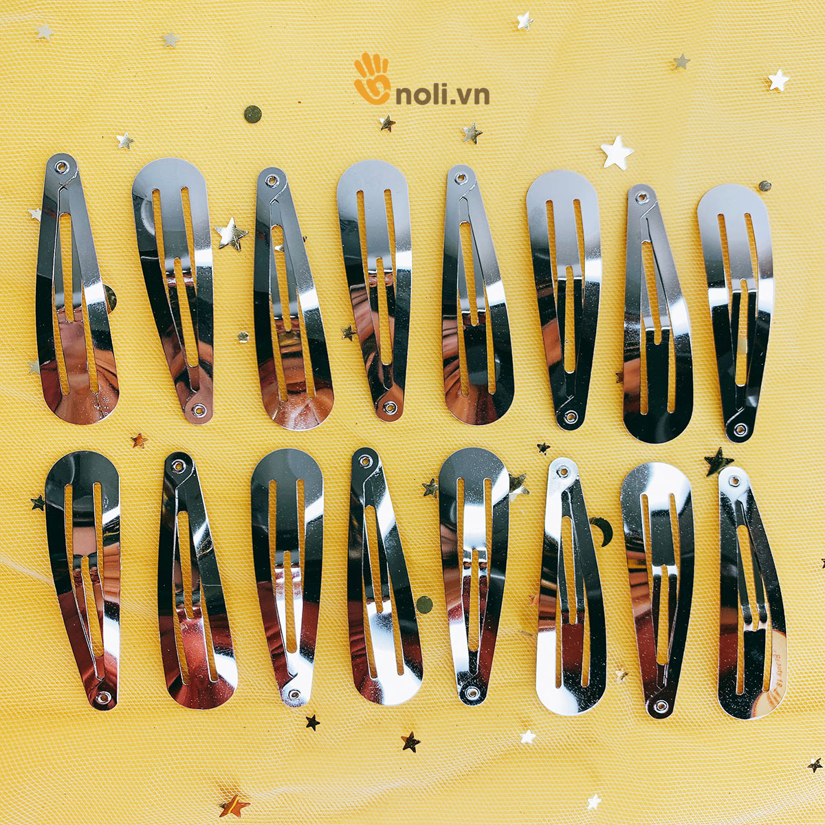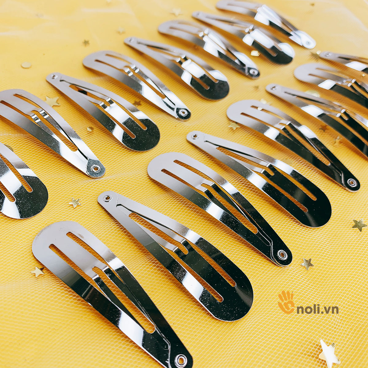 Kẹp tách giọt nước bạc thường sử dụng trong phụ kiện thời trang, sản phẩm handmade. Kẹp tách dùng để kẹp tóc, cũng có thể dùng làm phôi gắn các họa tiết trang trí thành chiếc kẹp tóc độc đáo. Kẹp tóc chắc chắn, bóng, không bong tróc và có kích thước đa dạng. Ưu điểm của sản phẩm là vệ sinh dễ dàng, bền đẹp với thời gian. Ngoài ra shop NoLi còn bán cả kẹp tách bọc ruy băng trộn màu nữa. Các bạn ấn vào tên sản phẩm để tham khảo thêm nha.