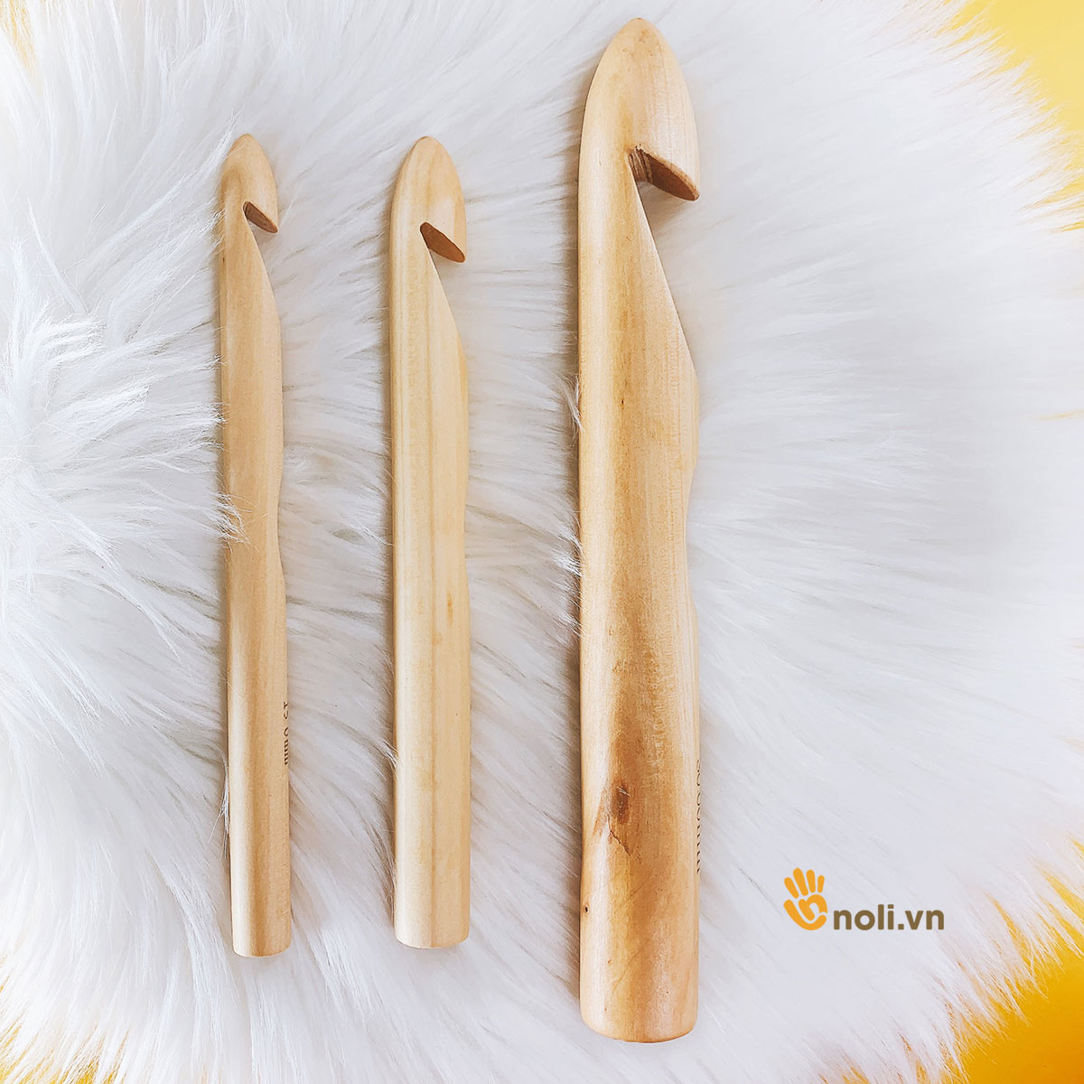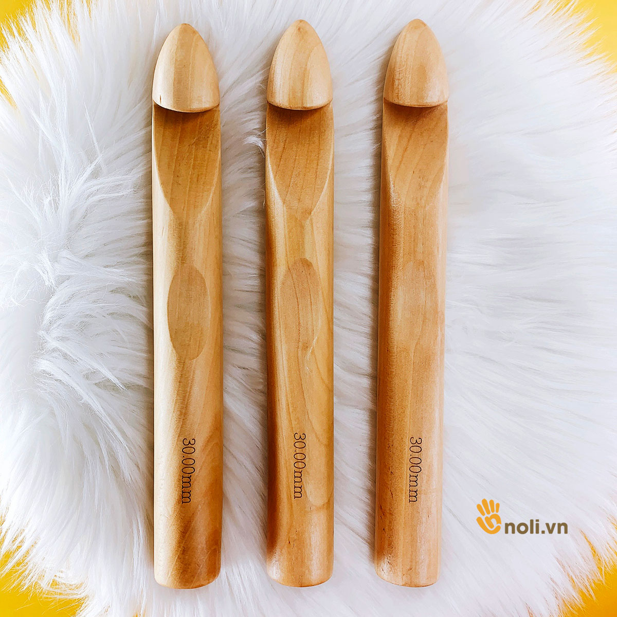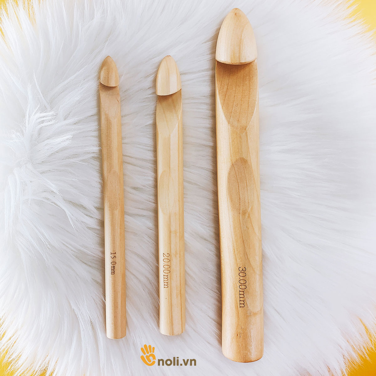 Ưu điểm nổi trội của kim móc gỗ size lớn này là có những size kim rất to từ 15-30mm, đáp ứng được các dòng len sợi to như len nhung, sợi vải cỡ đại. Giá thành thì rất hợp lý.