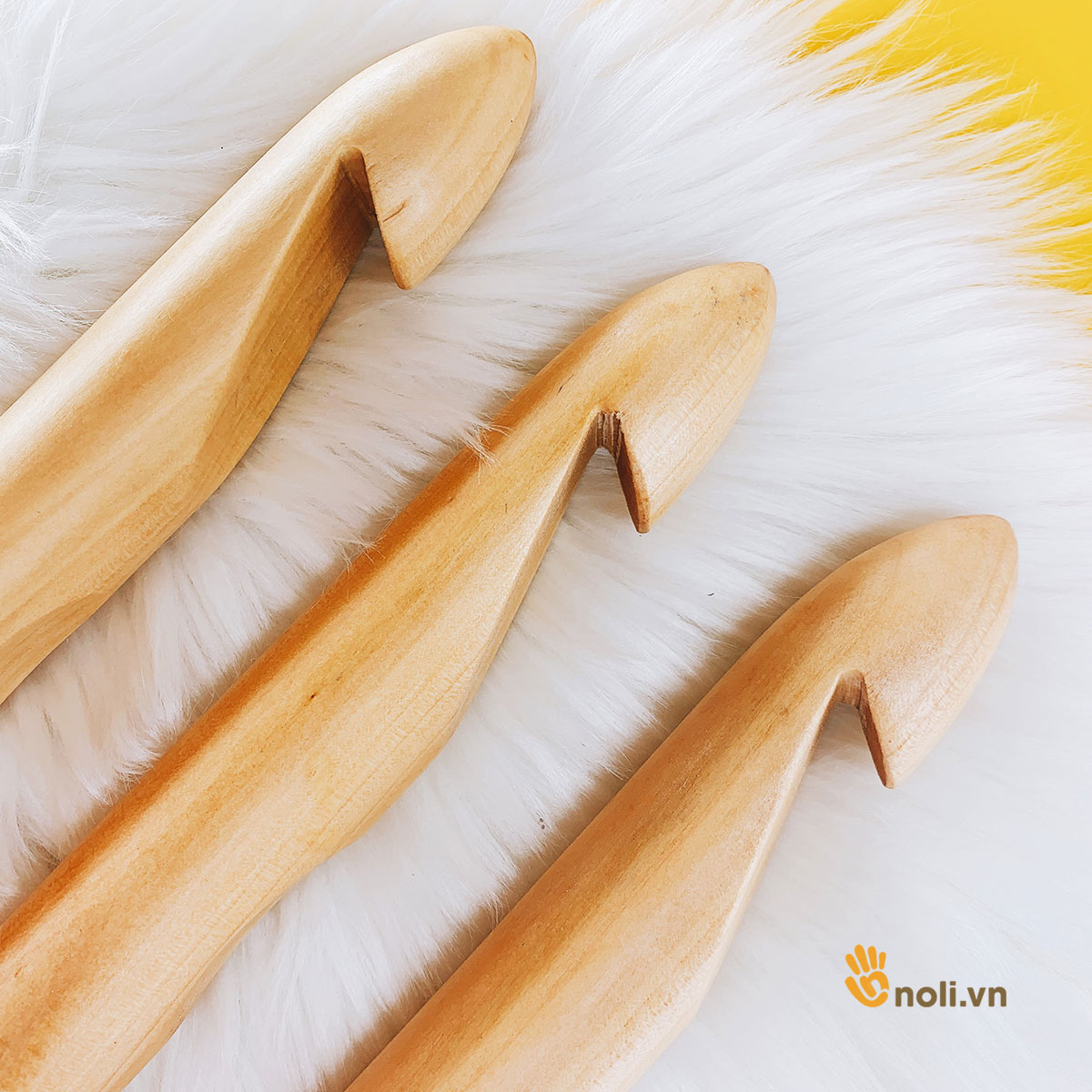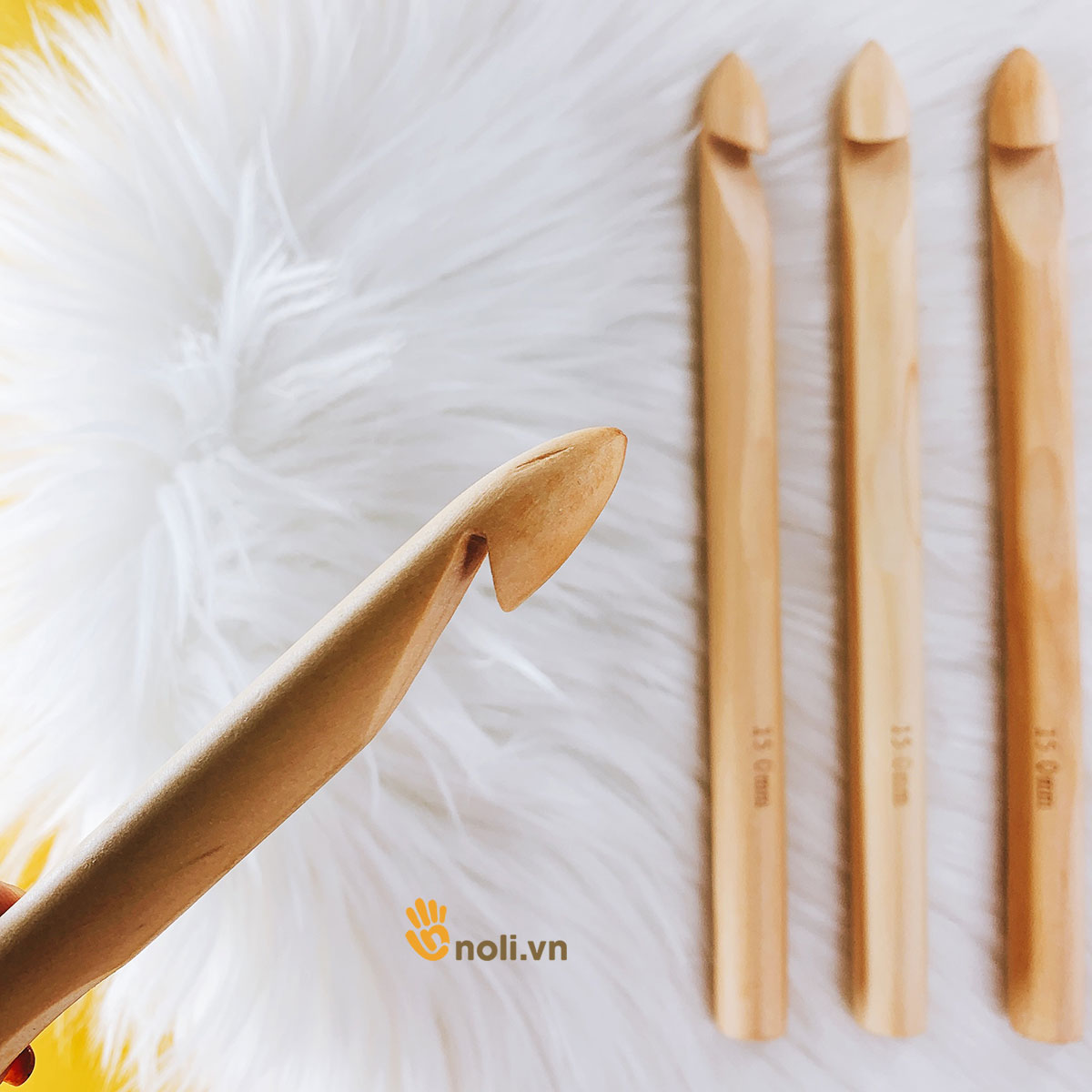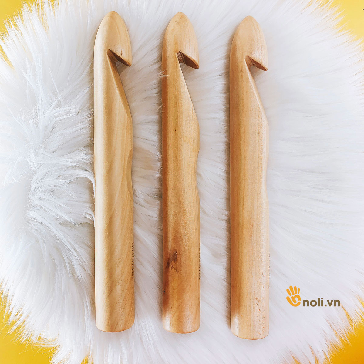 Ưu điểm nổi trội của kim móc gỗ size lớn này là có những size kim rất to từ 15-30mm, đáp ứng được các dòng len sợi to như len nhung, sợi vải cỡ đại. Giá thành thì rất hợp lý.