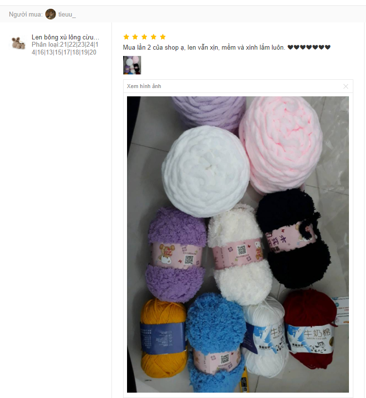 Màu sắc len sợi giữa các lô hàng có thể sẽ bị chênh 1 chút do nhà sản xuất nhuộm màu tùy vào số lot của lô đó. Các bạn mua hàng nên chọn đủ hoặc dư 1,2 cuộn để làm. Hoặc giữ lại mác và 1 chút len mẫu để shop kiểm tra tồn kho bằng số lot thay vì mã màu nhé.