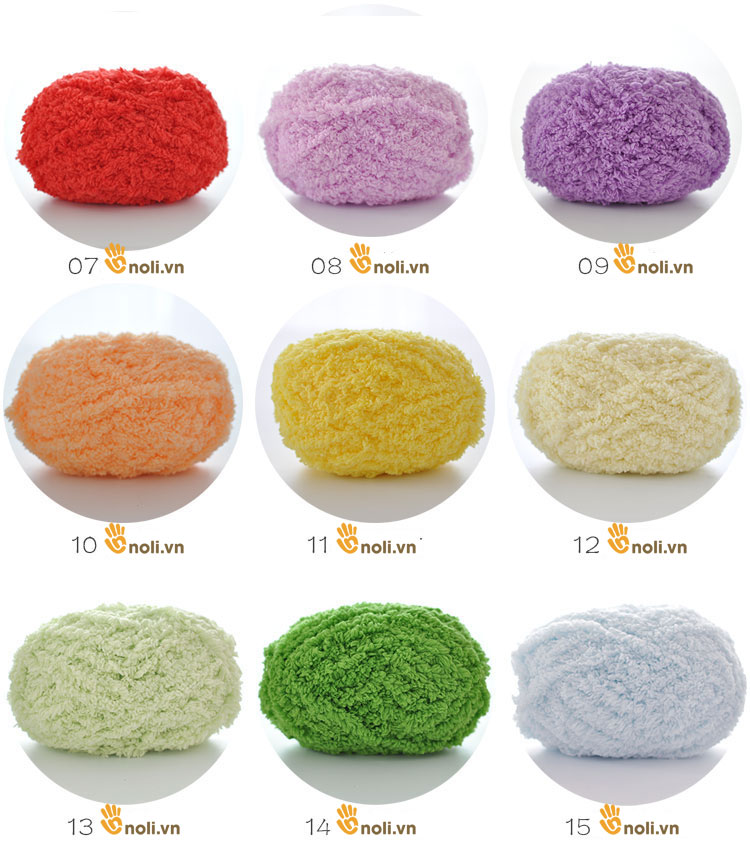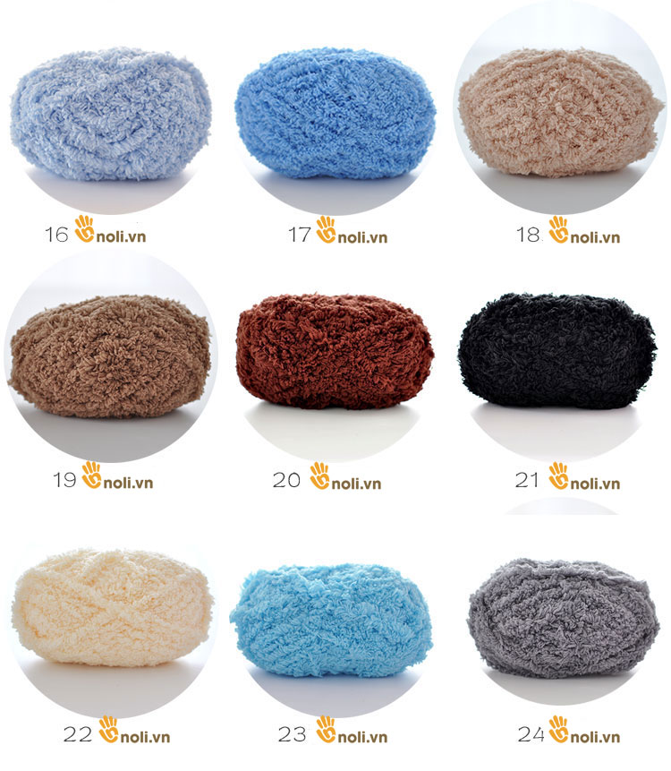 Với len bông xù lông cừu chị em sẽ có nhiều lựa chọn hơn cho những sản phẩm handmade của mình. Bảng màu đầy đủ gồm 24 màu. Trên mác cuộn len có ghi mã màu rõ ràng.