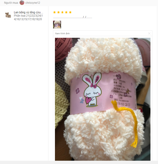 Trả lời: Với thành phẩm là chiếc khăn dành cho người lớn thì chị em sử dụng hết khoảng 4 cuộn len bông xù
