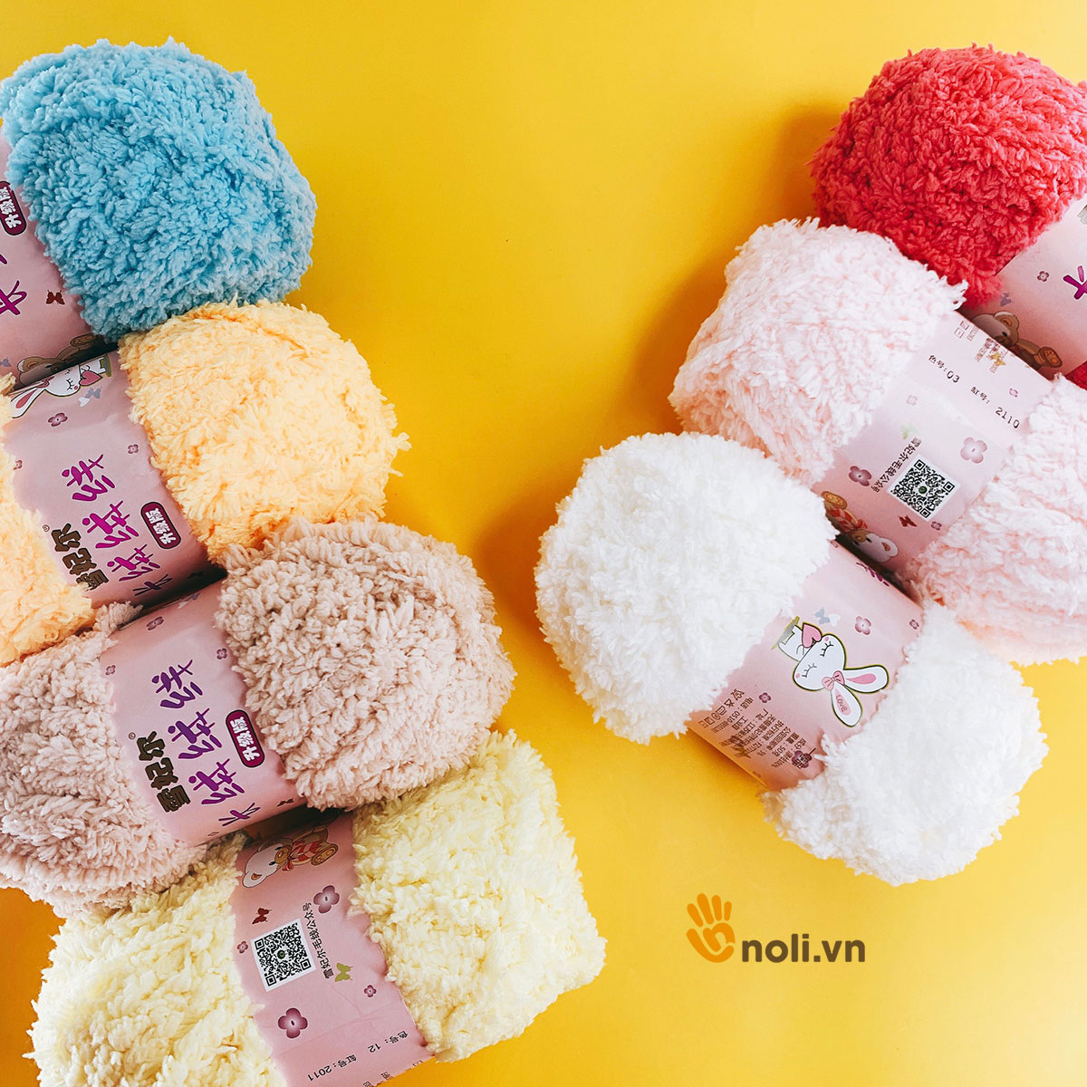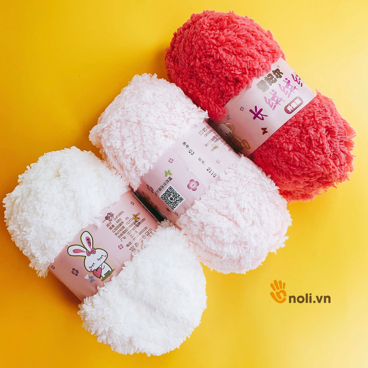 Len bông xù là sản phẩm mới toanh của nhà NoLi. Đây là dòng len sợi mềm, rất nhẹ được dùng để đan áo, mũ, viền áo váy,... hoặc chị em cũng có thể sử dụng để đan móc chăn, giày dép và cả thú bông cho bé nữa. Đặc biệt, len bông xù lông cừu là phiên bản nâng cấp của nhiều loại len lông xù trên thị trường. Len dày hơn, mềm hơn và đều lông. Sản phẩm sẽ giữ ấm mùa đông rất tốt cho trẻ sơ sinh và trẻ nhỏ.