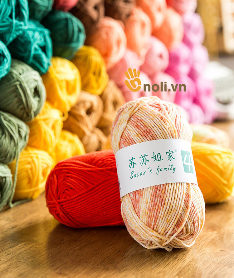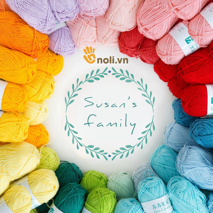 Len Susan's Family 4 len nội địa cao cấp Trung Quốc. Len có bảng màu 64 mã chạy từ nhạt tới đậm rất phong phú. Len được yêu thích vì rất an toàn cho trẻ nhỏ, cực kì mềm mại, chất sợi không bai dão, lên dáng sản phẩm rất đẹp.