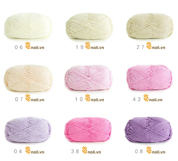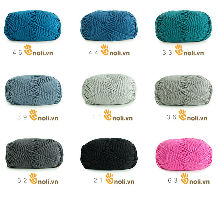 - Trên mác mỗi cuộn sợi NoLi có ghi rõ mã màu, nên chị em nhận hàng dễ dàng đối soát cuộn len.