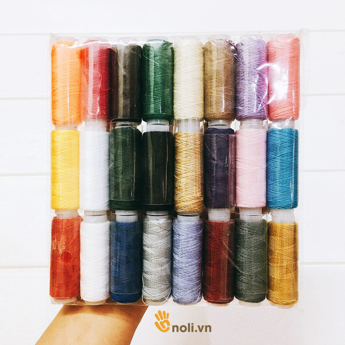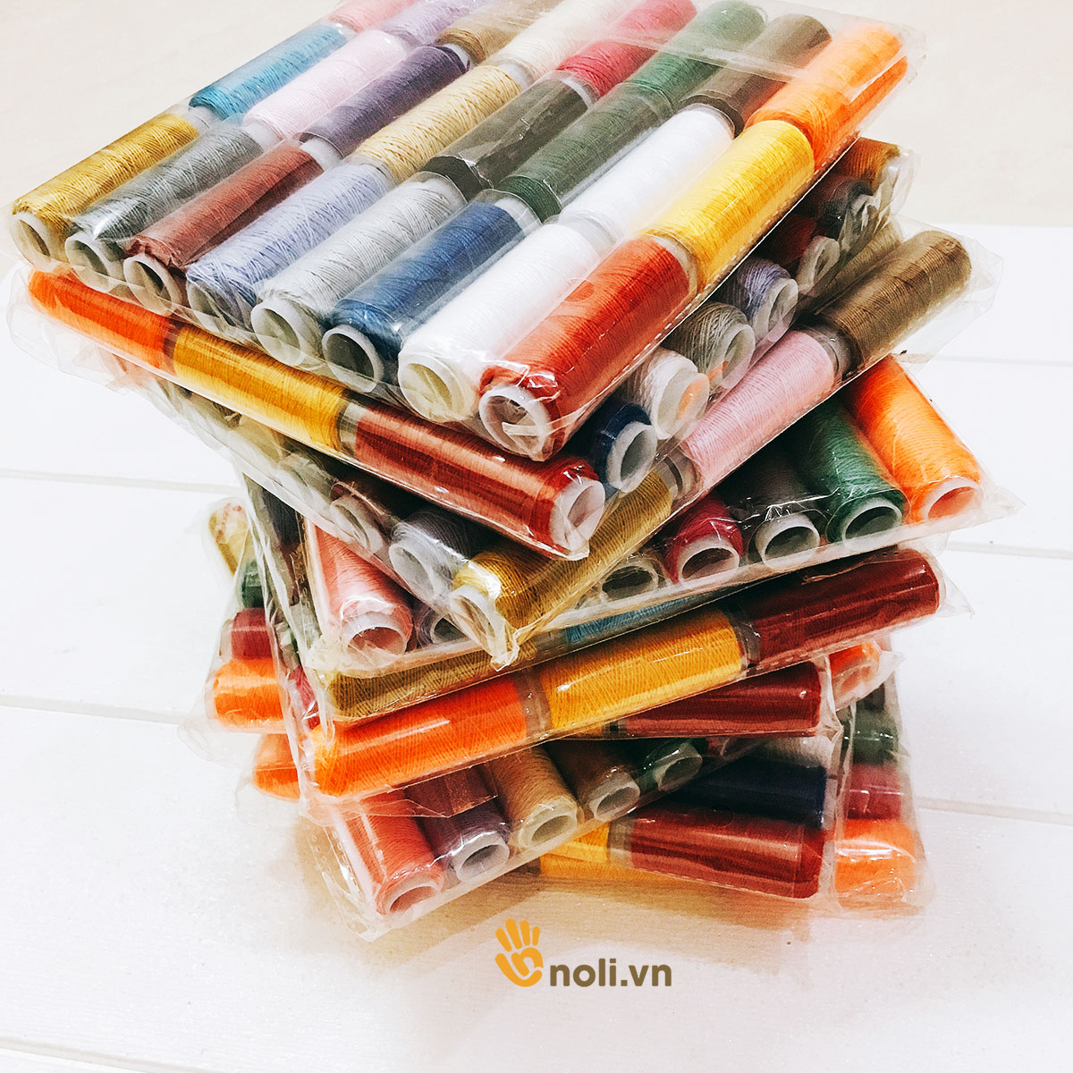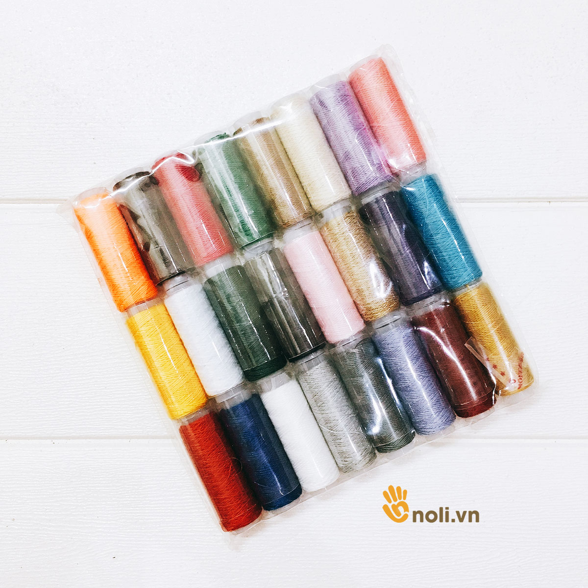 Lốc 24 cuộn chỉ khâu đủ màu rất thích hợp với chị em "nữ công gia chánh". Sản phẩm có rất nhiều màu giúp chị em có thể thỏa sức may vá, thêu thùa theo sức sáng tạo của mình. Sợi chỉ mịn, màu nguyên chất.