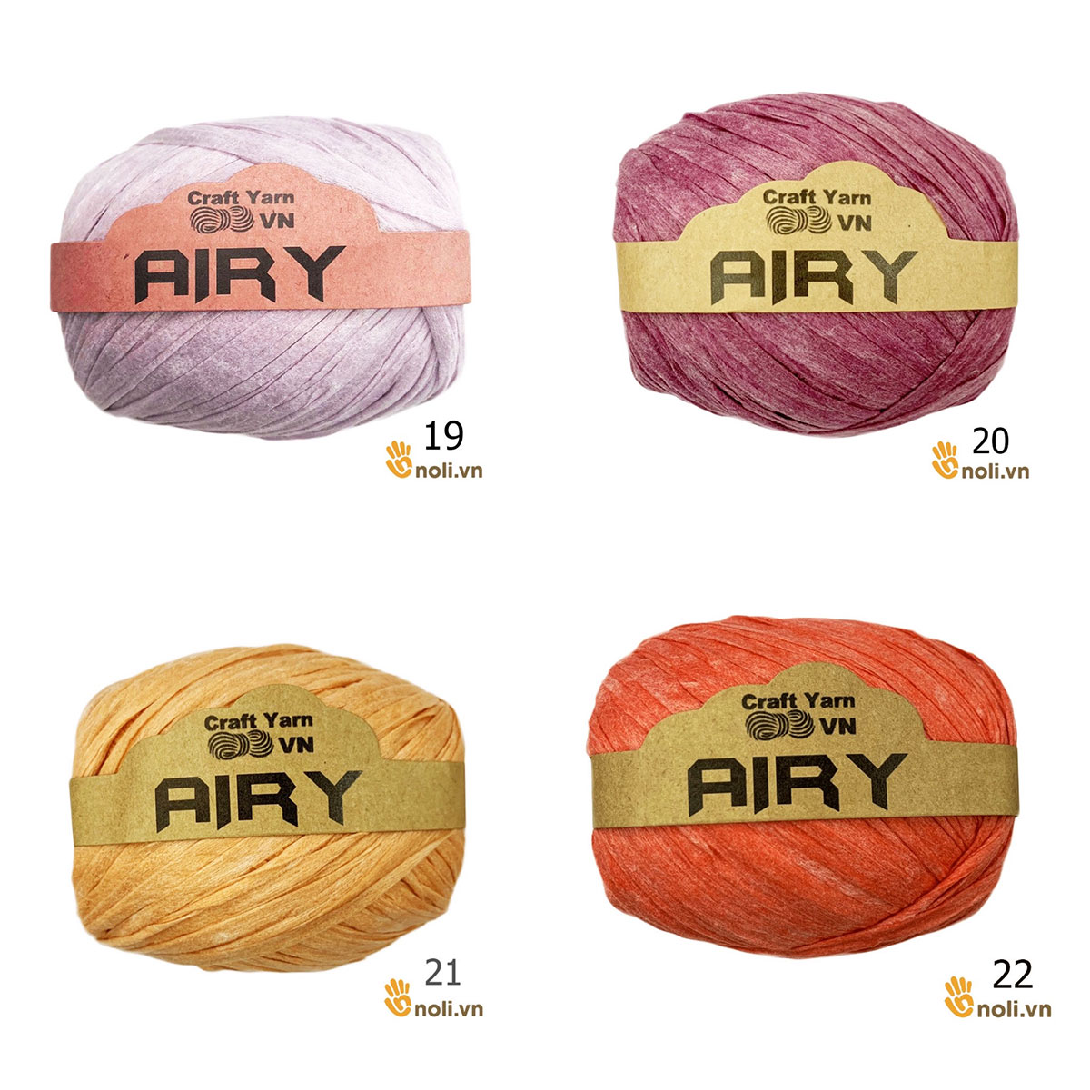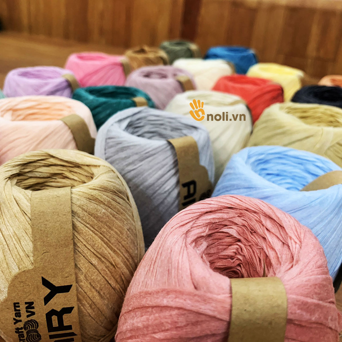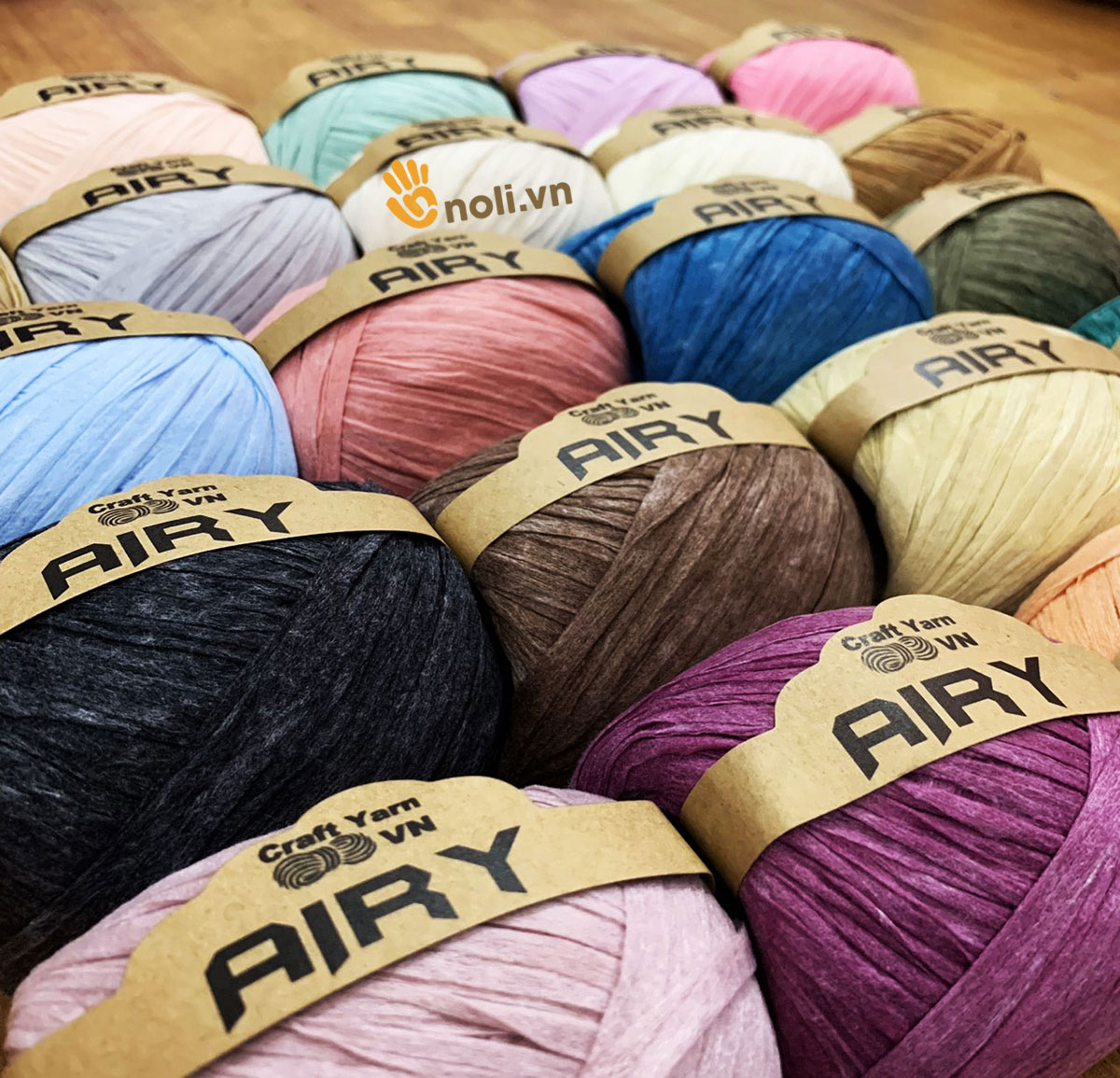 Sợi cọ giấy Airy có xuất xứ từ Việt Nam. Sợi mềm mại, siêu nhẹ chuyên để đan móc túi xách, túi đựng điện thoại, túi tote đi biển, mũ nón có vành mùa hè. Sợi có bảng màu 22 mã, màu sắc pastel giúp cho sản phẩm trở nên vintage và giản dị, nhẹ nhàng với thiên nhiên.