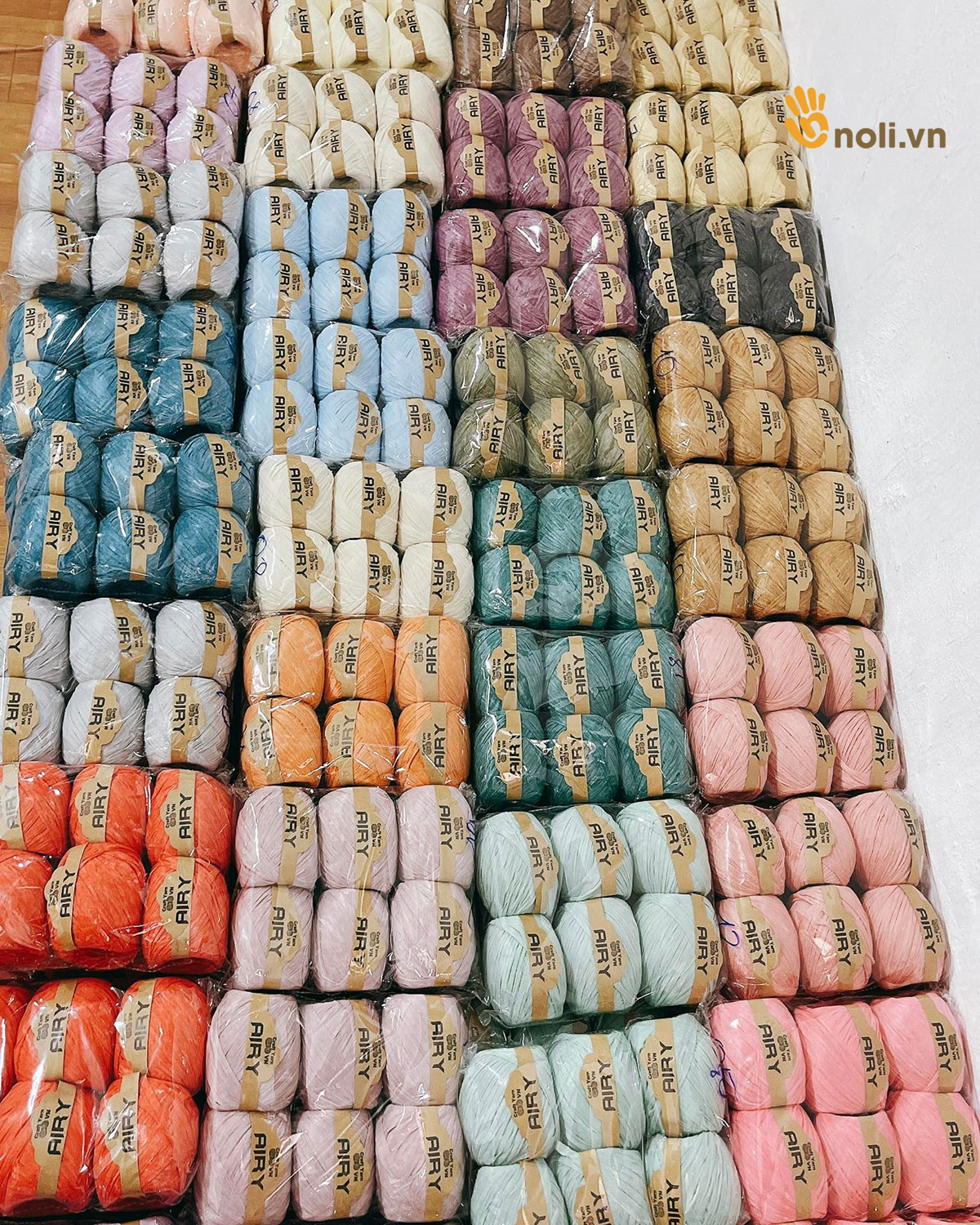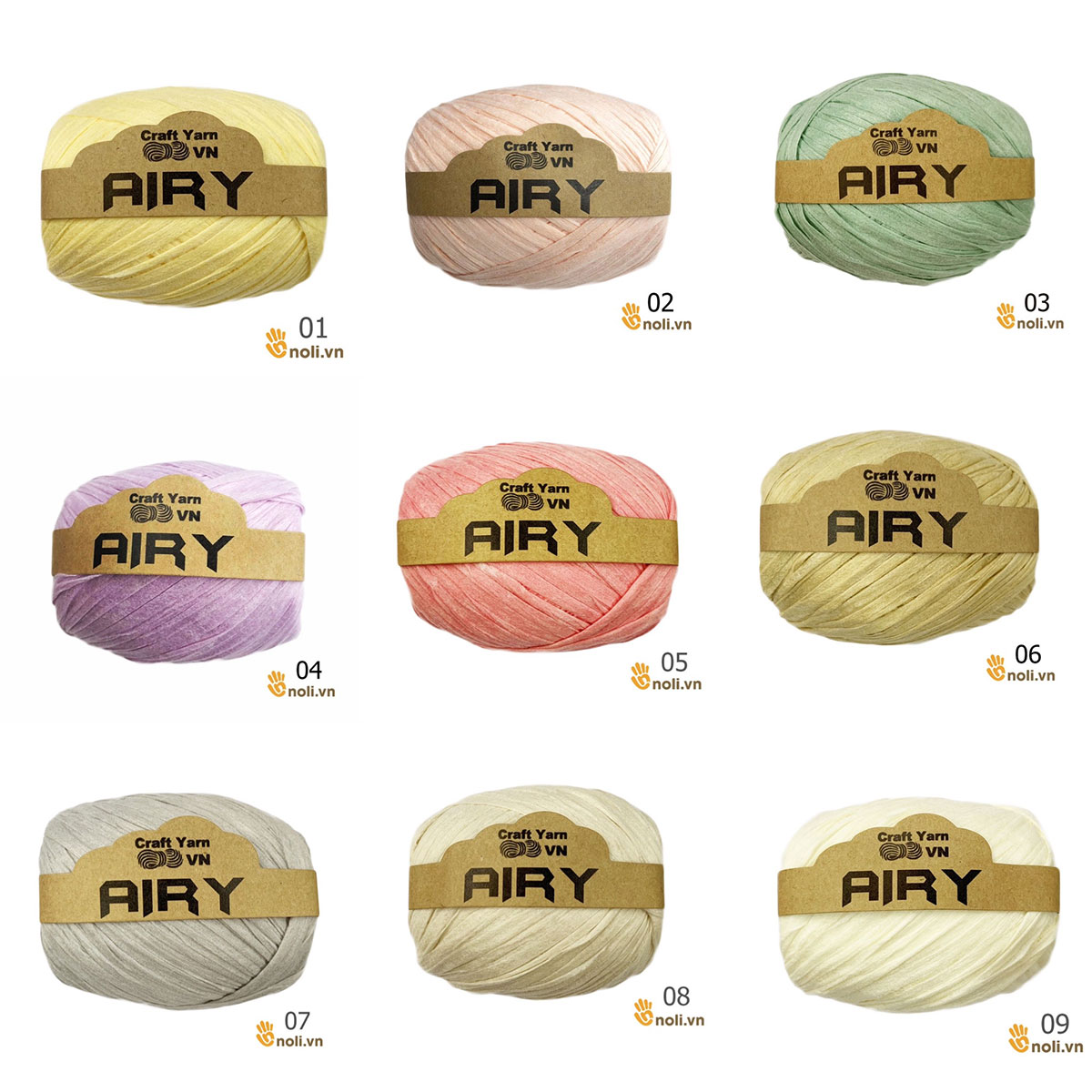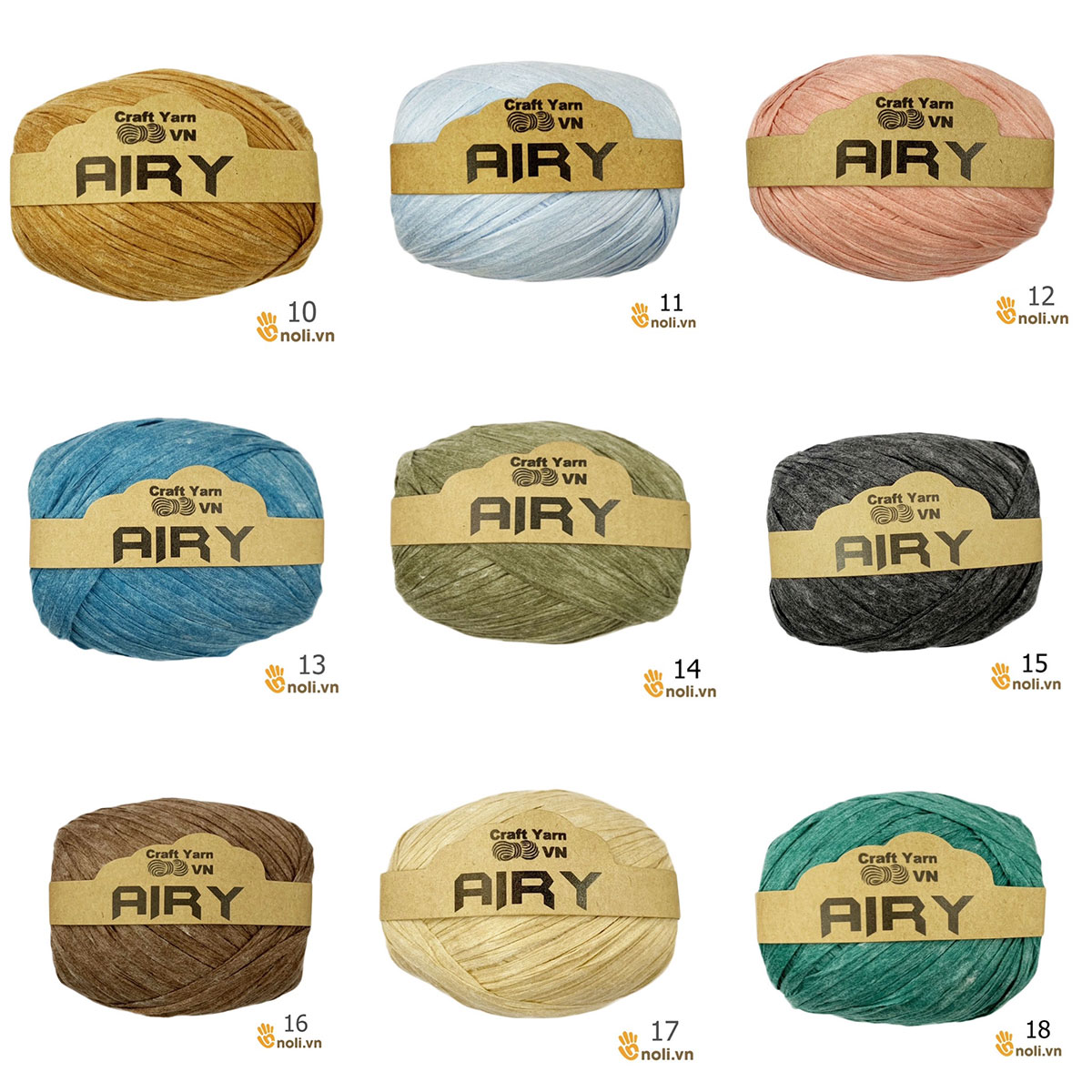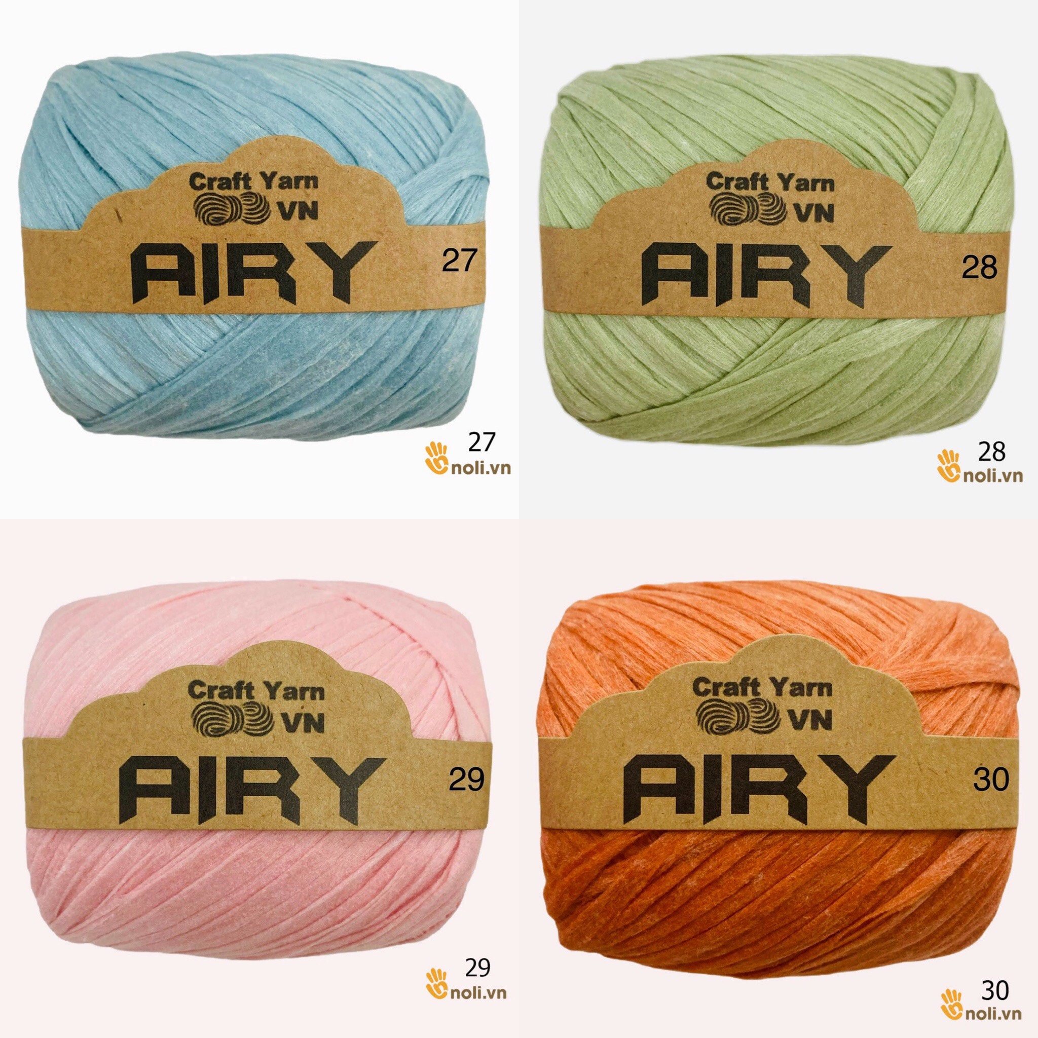Sợi cọ giấy Airy có xuất xứ từ Việt Nam. Sợi mềm mại, siêu nhẹ chuyên để đan móc túi xách, túi đựng điện thoại, túi tote đi biển, mũ nón có vành mùa hè. Sợi có bảng màu 22 mã, màu sắc pastel giúp cho sản phẩm trở nên vintage và giản dị, nhẹ nhàng với thiên nhiên.
