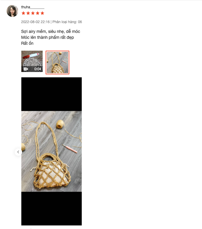 Trả lời: Khi đan móc sợi cọ giấy Airy chị em nên sử dụng kim có kích thước 3.0-3.5mm