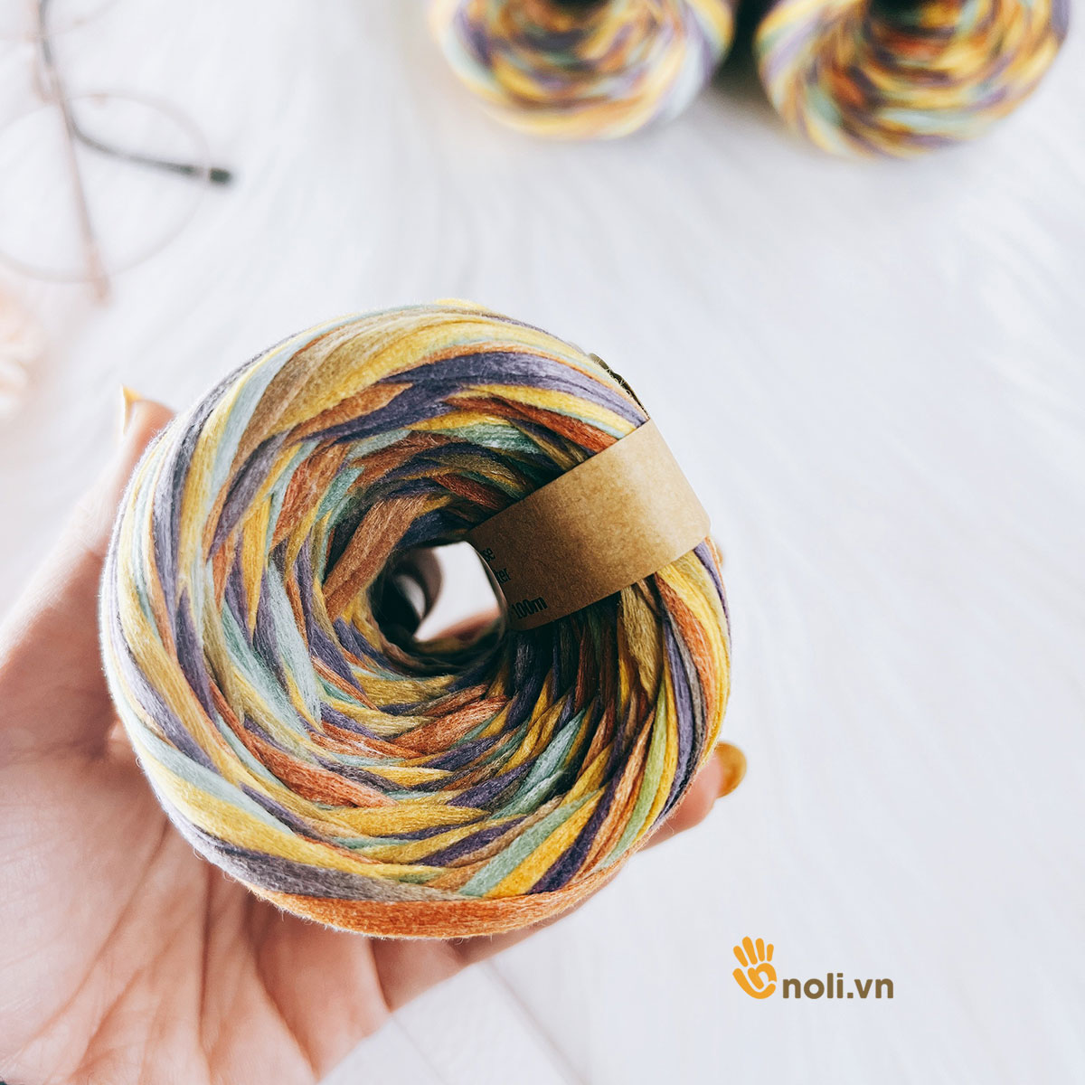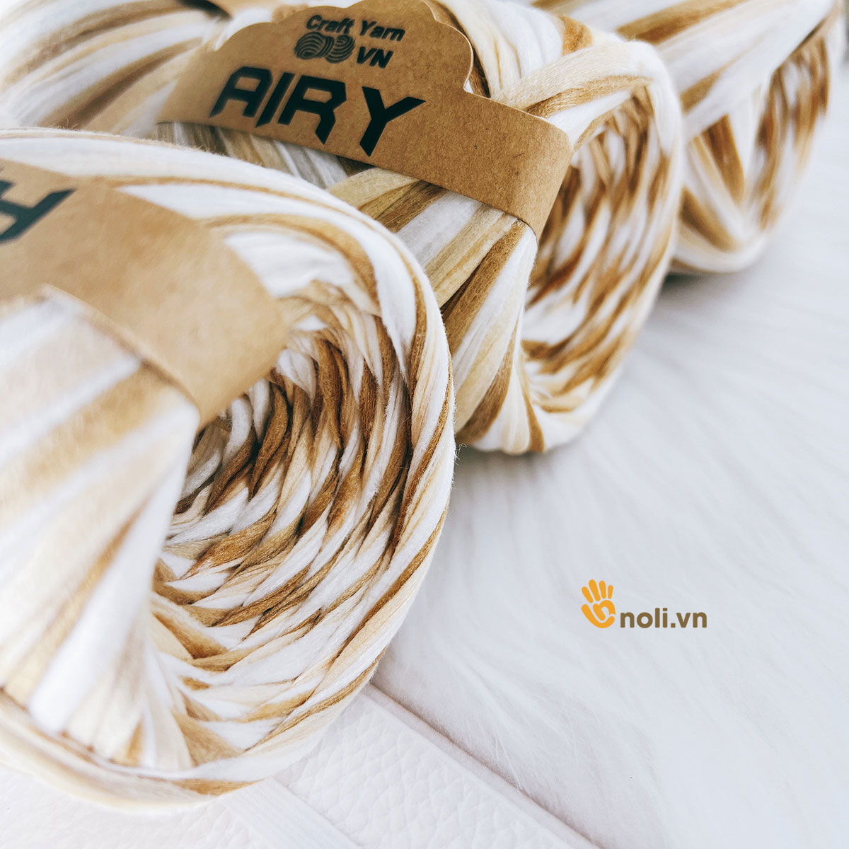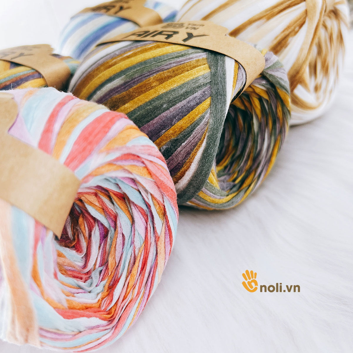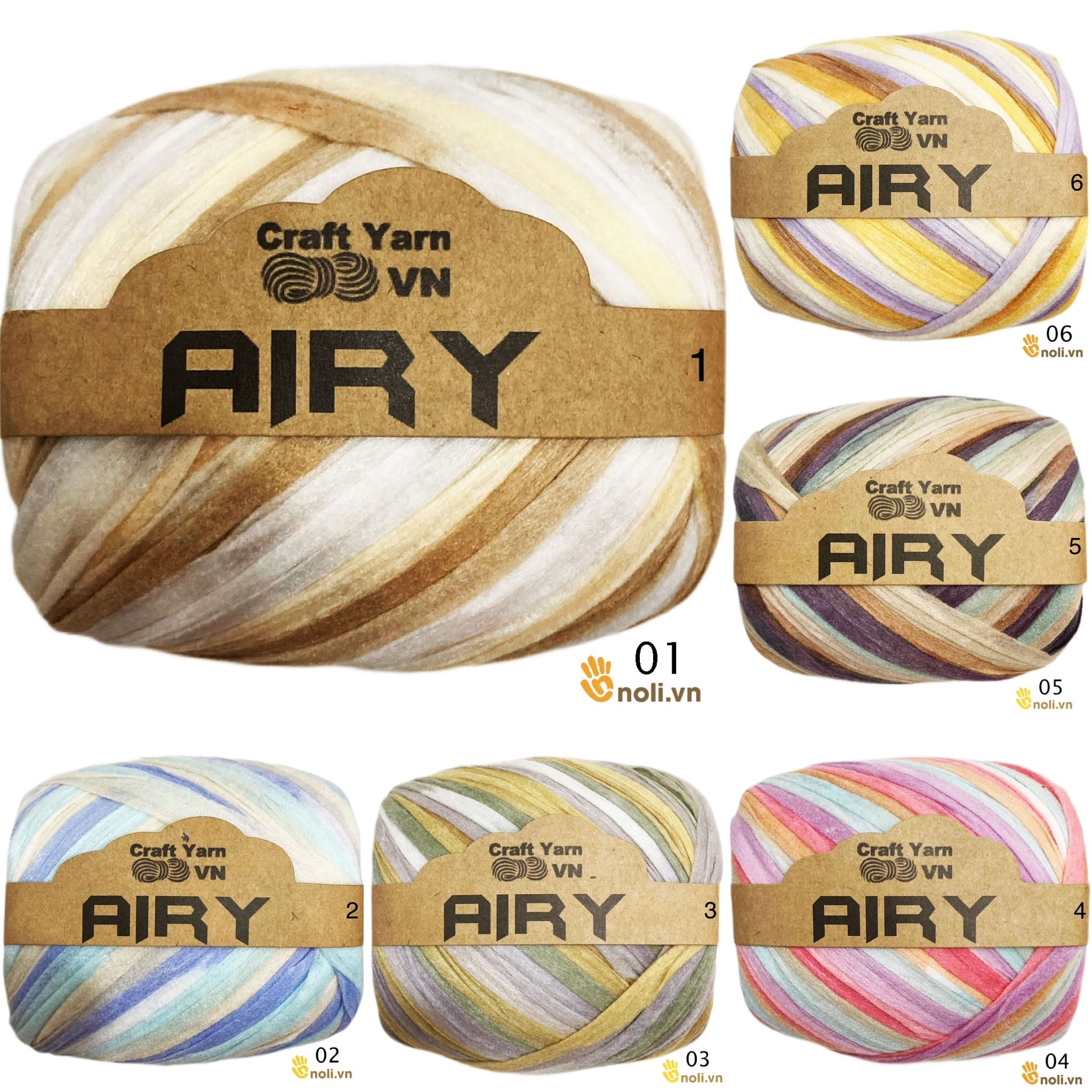 Sợi cọ giấy Airy loang có xuất xứ từ Việt Nam. Sợi mềm mại, siêu nhẹ chuyên để đan móc túi xách, túi đựng điện thoại, túi tote đi biển, mũ nón có vành mùa hè. Sợi có bảng màu 12 mã, màu sắc pastel kết hợp với phối màu giúp cho sản phẩm trở nên độc đáo, vintage ưa mắt tới người nhìn hơn