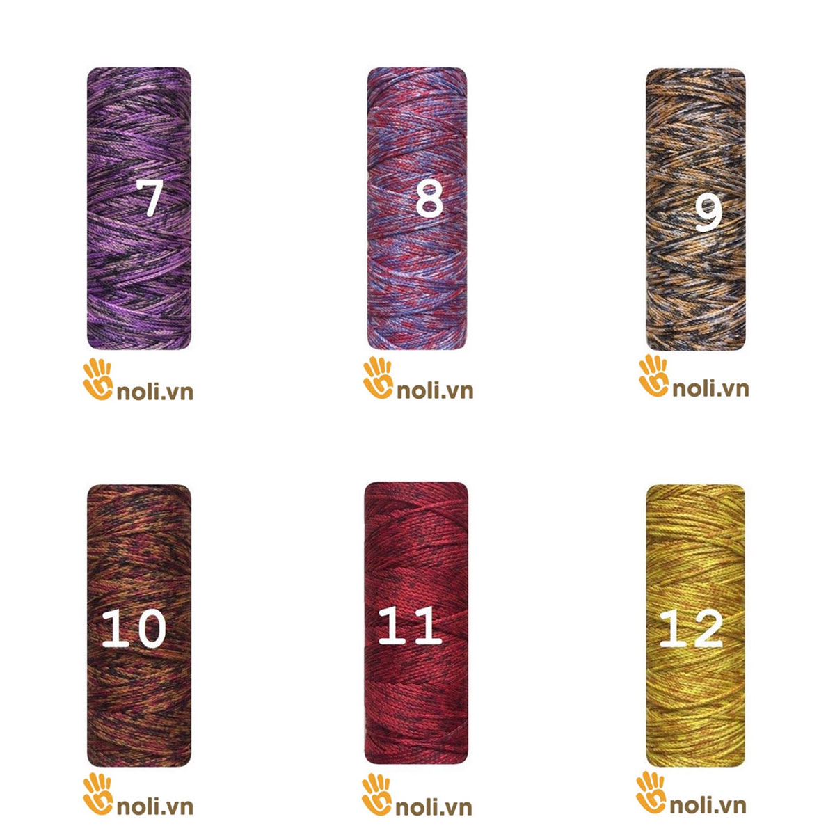 Sợi dệt loang 2mm nhà NoLi có tất cả 24 mã màu từ 01-24 rất phong phú, cho chị em những lựa chọn tốt nhất.