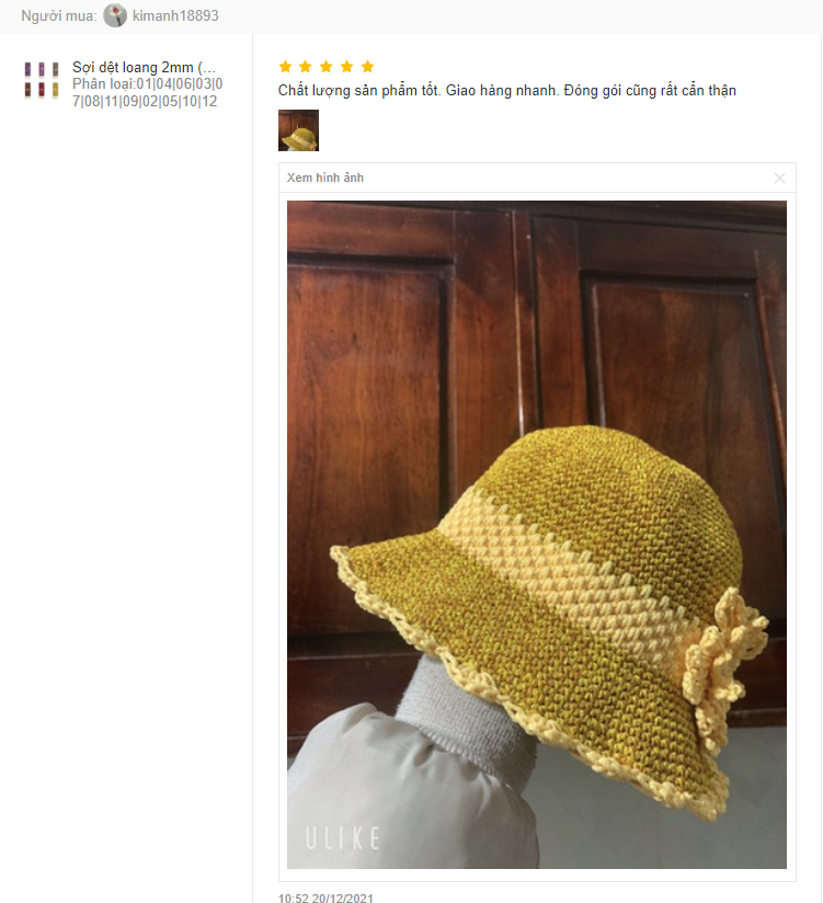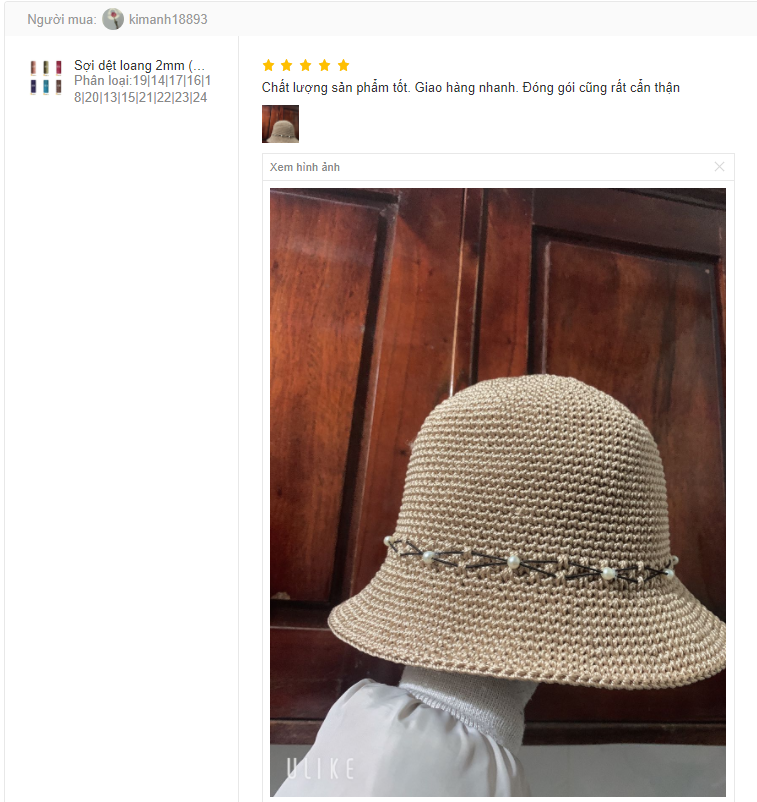 Trả lời: Với thành phẩm là mũ người lớn vành nhỏ thì chị em cần sử dụng hết khoảng 2 cuộn sợi dệt loang