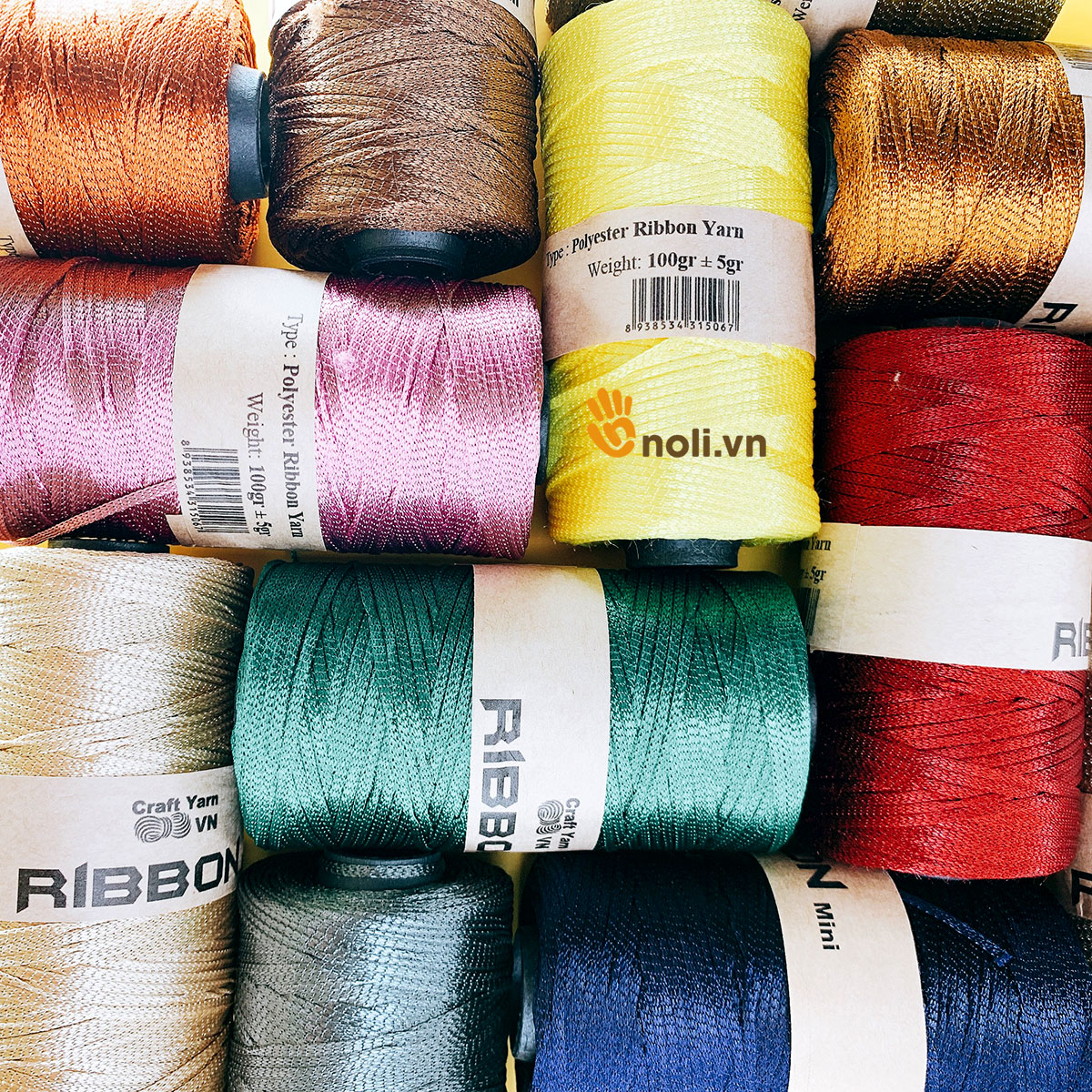 Sợi dệt ribbon chuyên sử dụng móc túi xách, móc giày. Chất liệu dai, chắc, bền màu, độ bóng đẹp giúp chị em tạo ra những món đồ handmade vô cùng tuyệt vời.