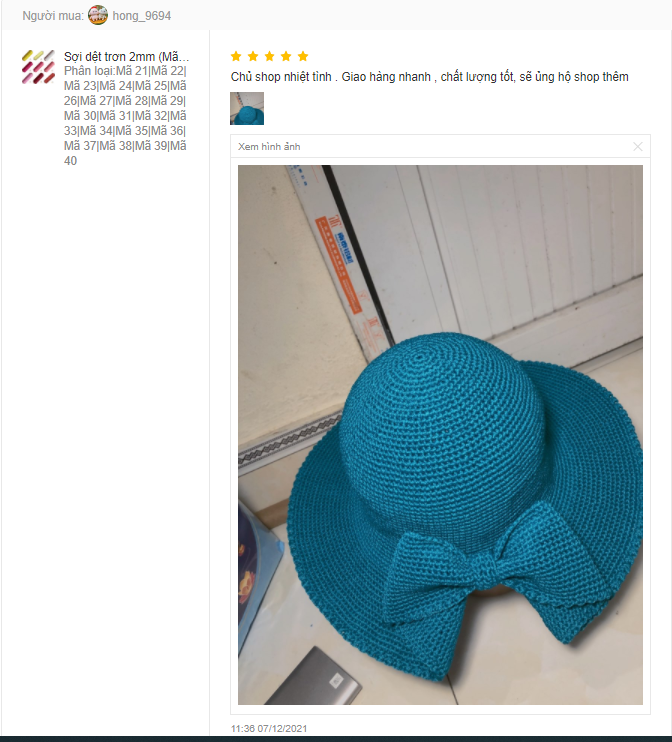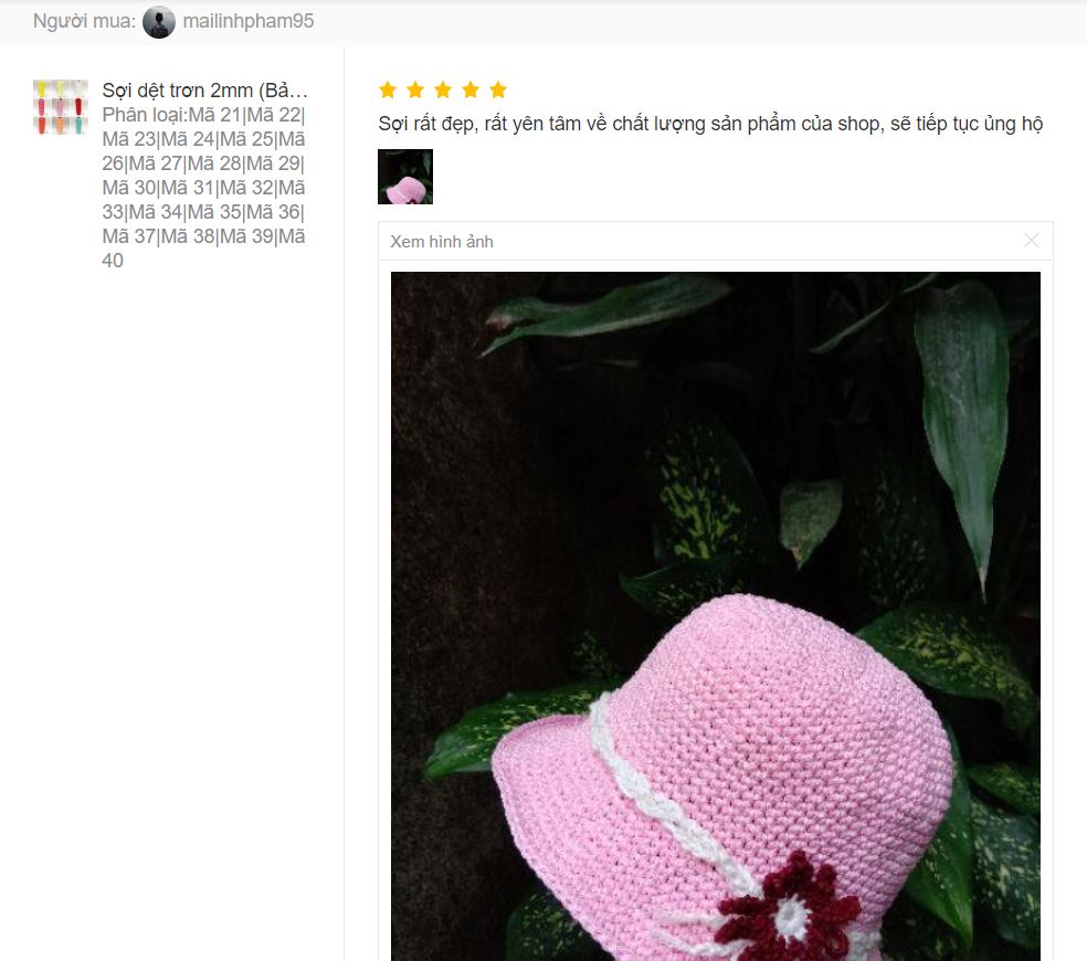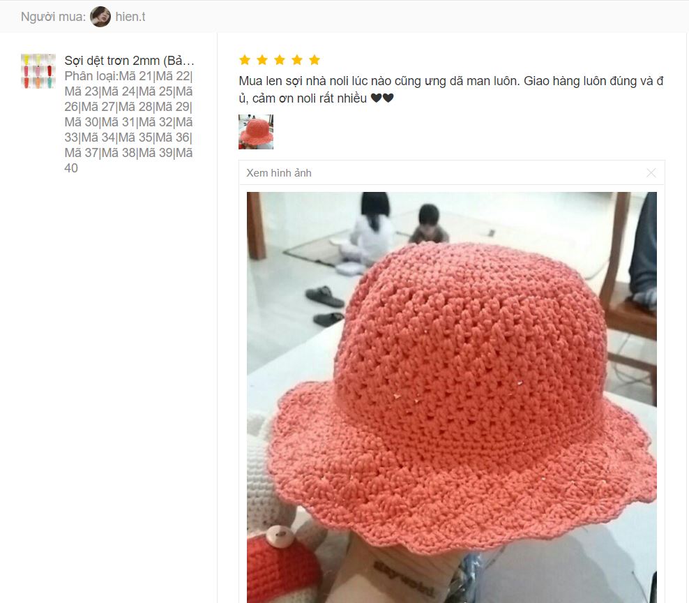 Trả lời: Với thành phẩm là mũ người lớn vành nhỏ thì chị em cần sử dụng hết khoảng 3 cuộn , hoặc hơn 3 cuộn sợi dệt trơn