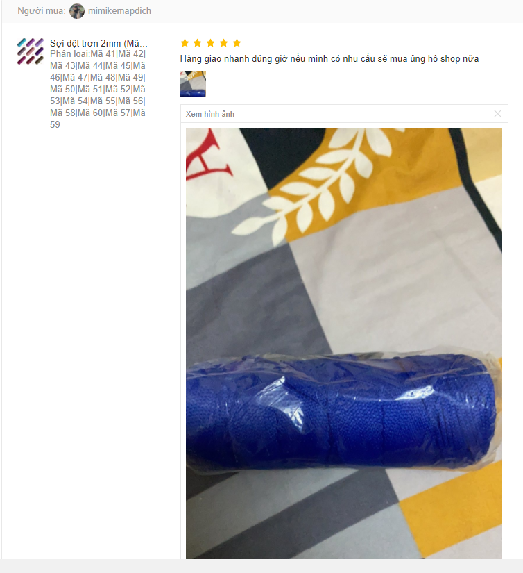 Trả lời: Sợi dệt trơn có kích thước 2mm
