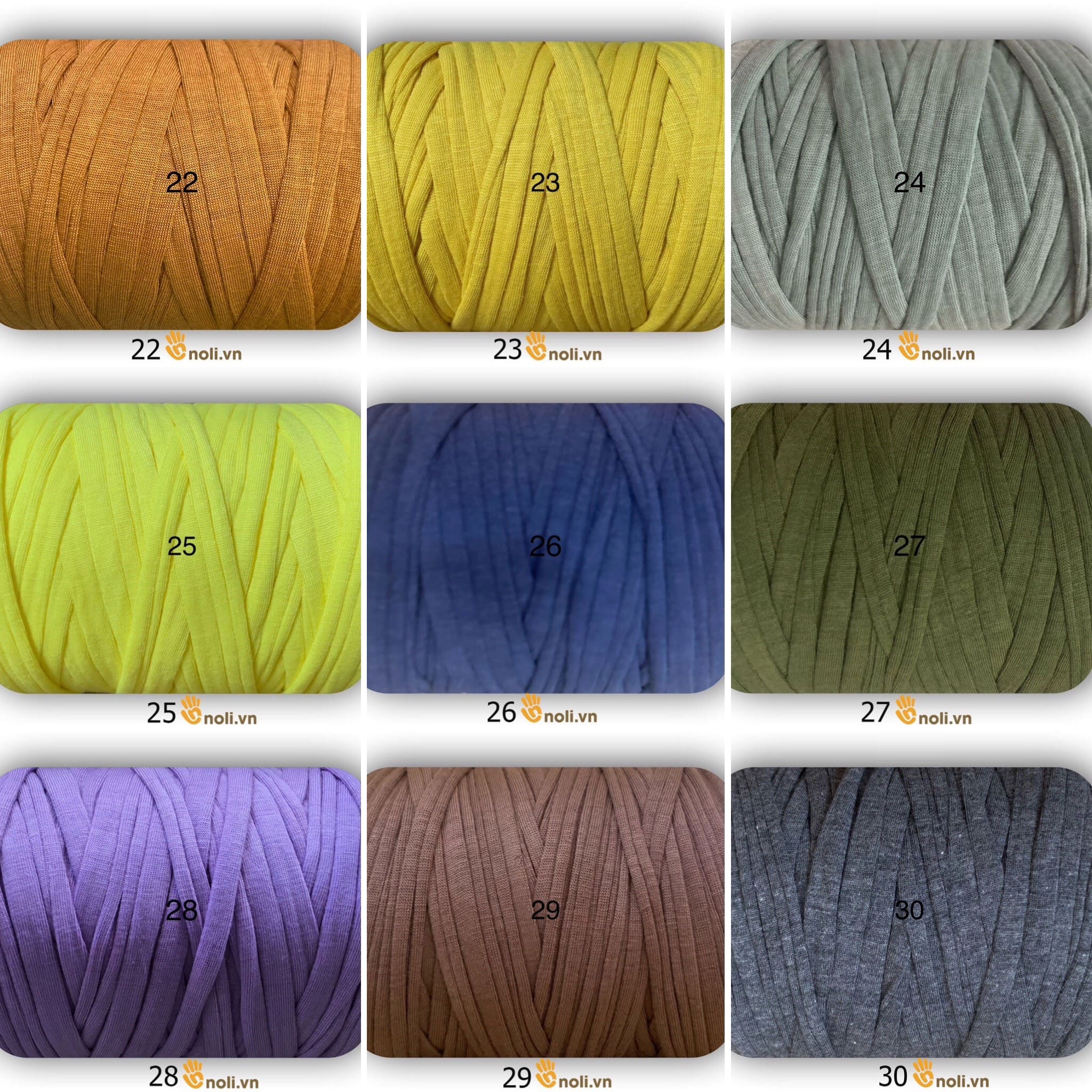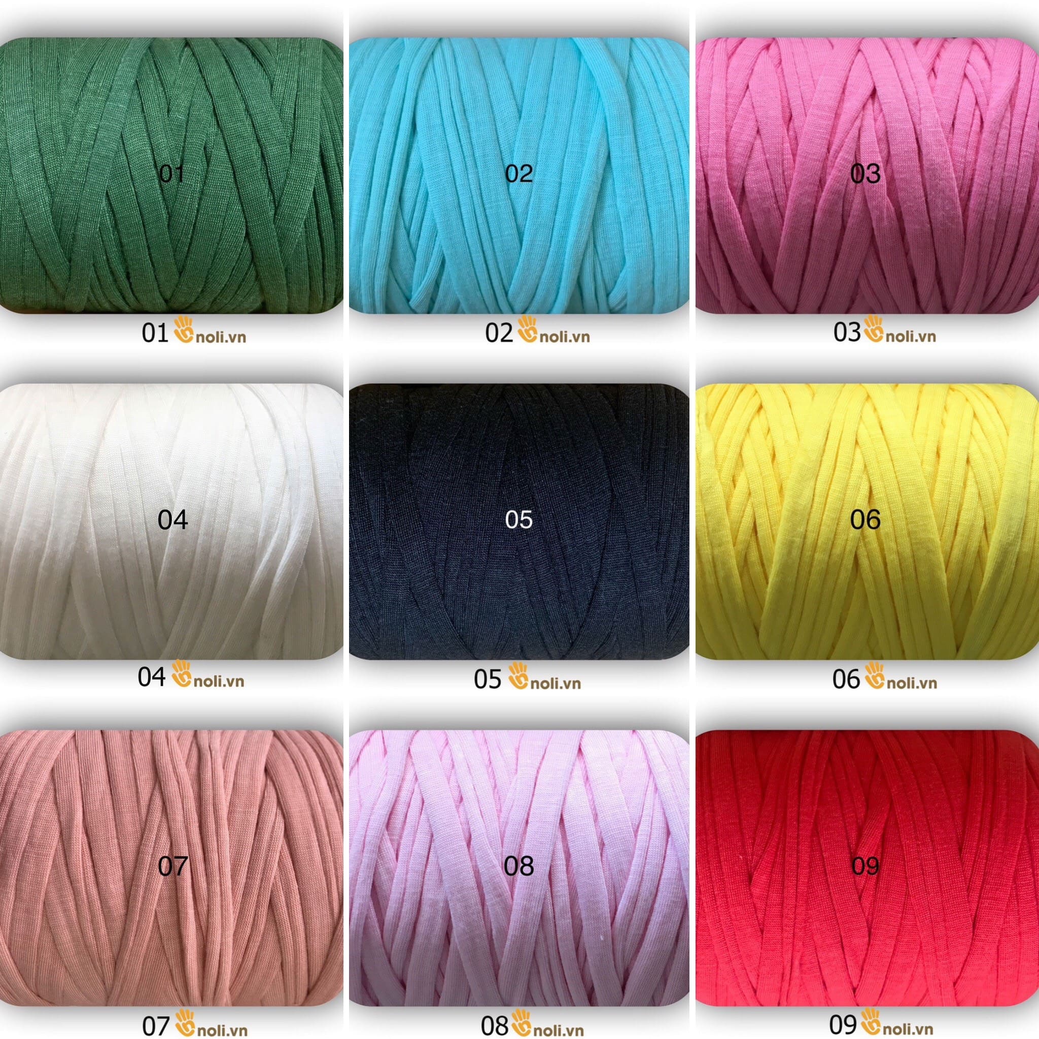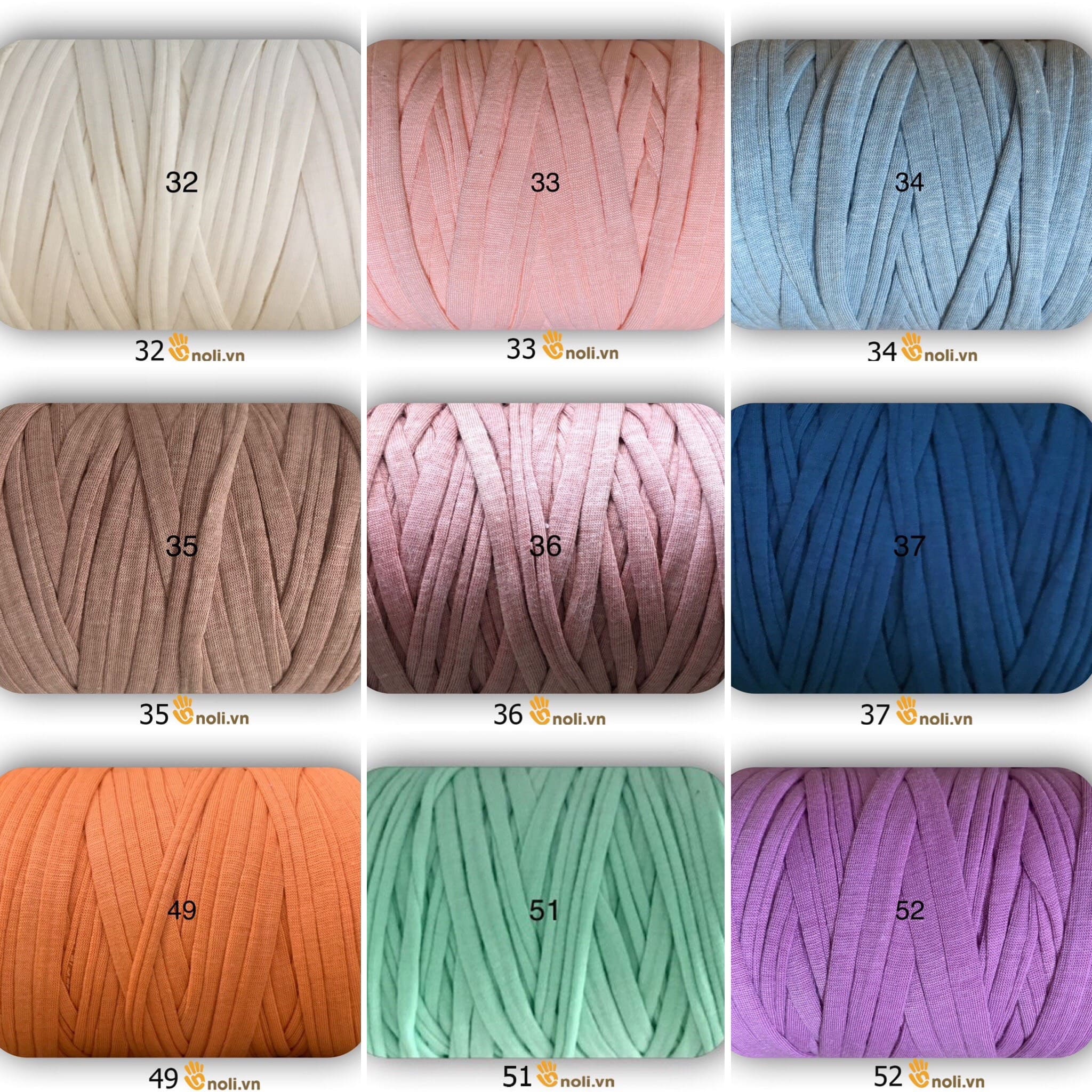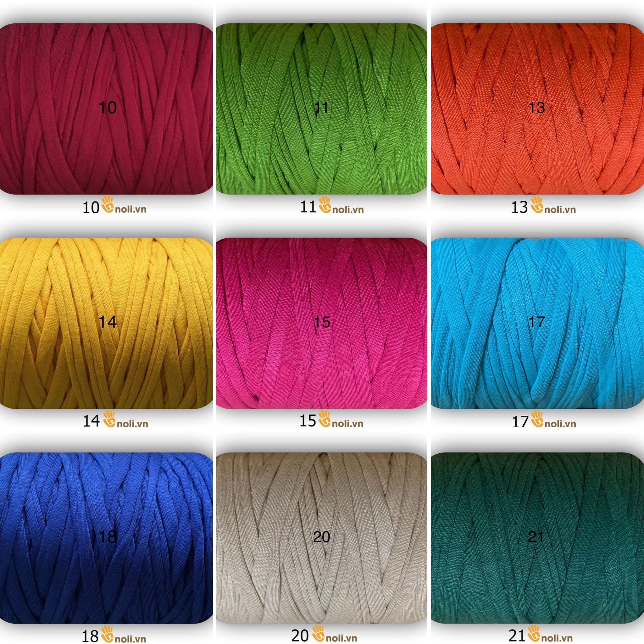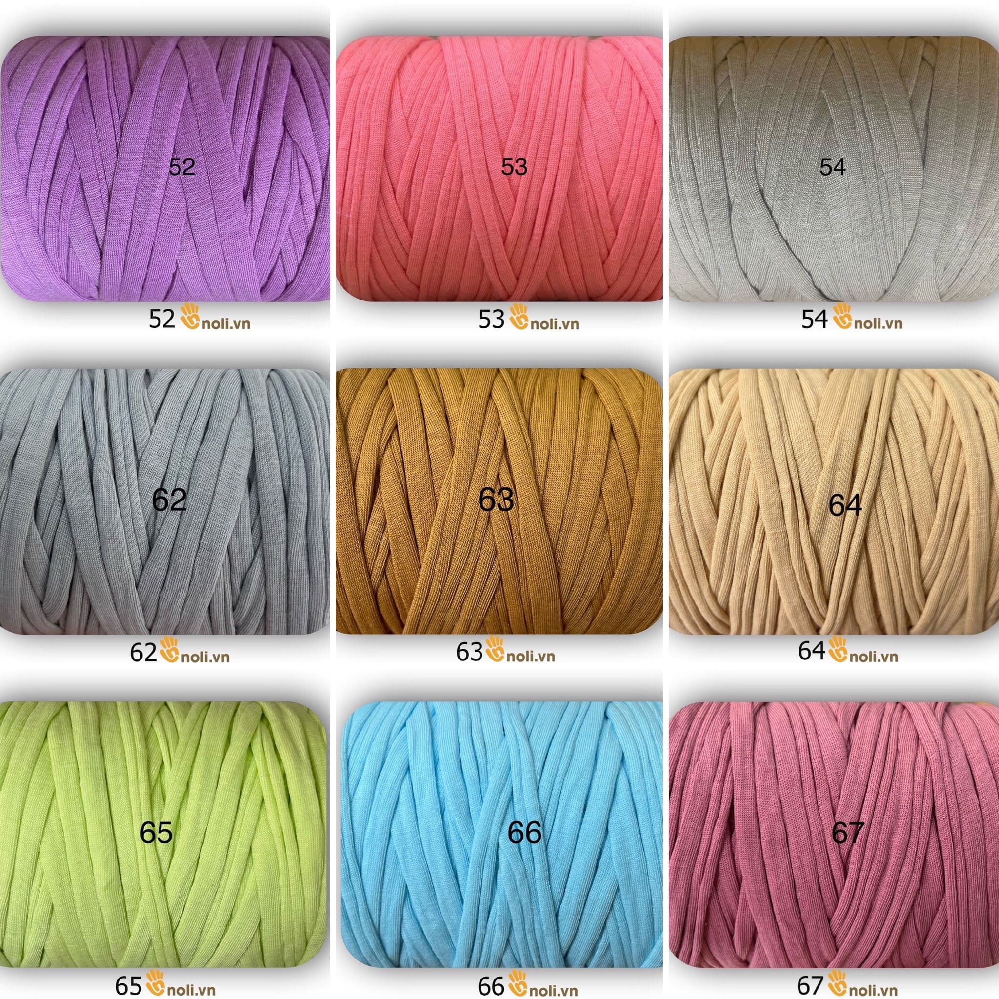 Bảng màu sợi vải T-shirt Yarn có màu sắc phong phú. Sợi có độ co giãn, móc siêu thích.